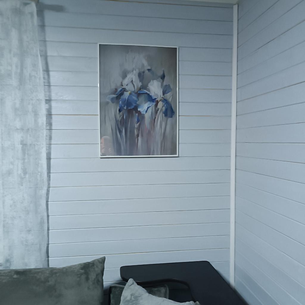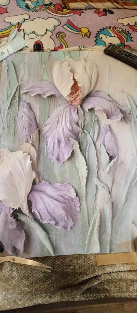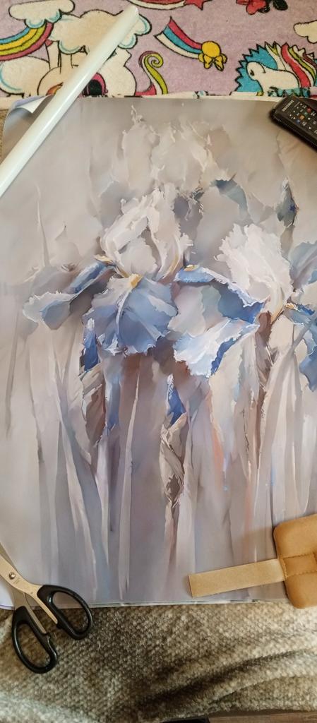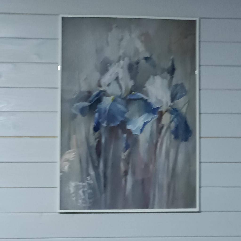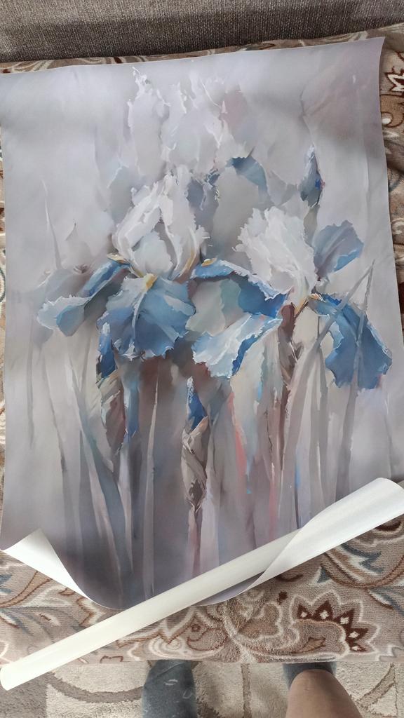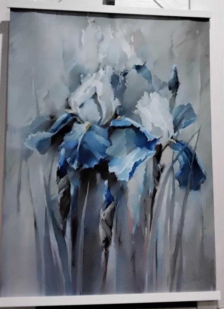 The picture is very beautiful, it enlivened the room. My favorite irises.