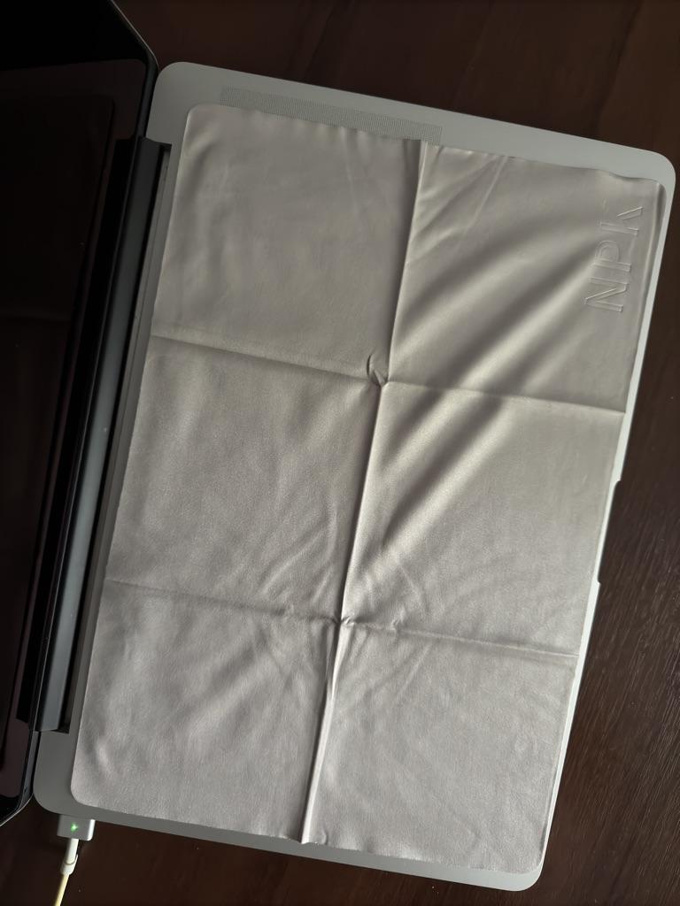 The cloth covers the keyboard, touchpad and touchbar well on the Macbook Pro 13. Nice fabric with the NPK logo. I will use it. I bought Mac used, the original napkin was lost by the previous owner. I hope this will serve as a good replacement.