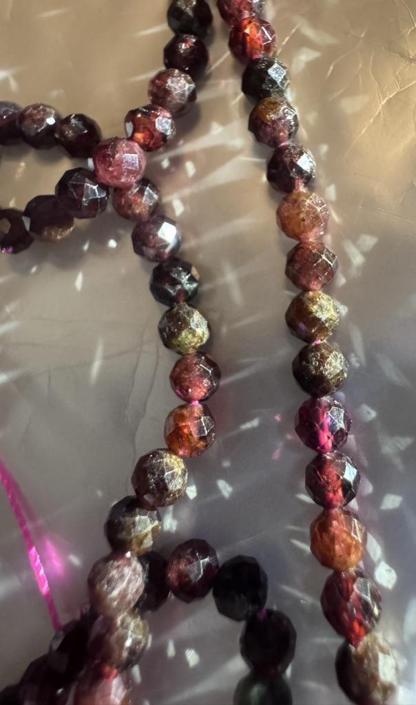 Excellent beads. Not plastic, real faceted garnets. Very beautiful! don't go wrong with the size