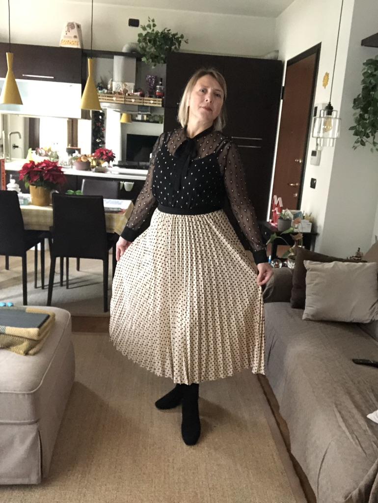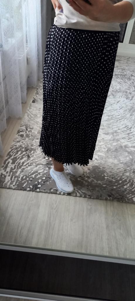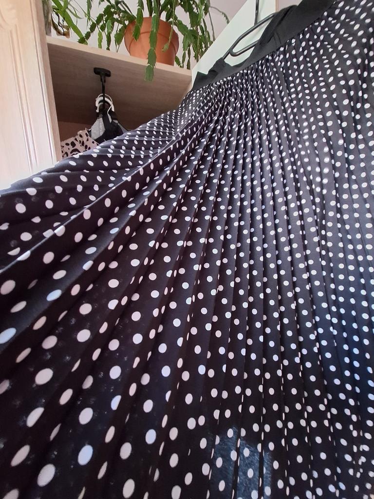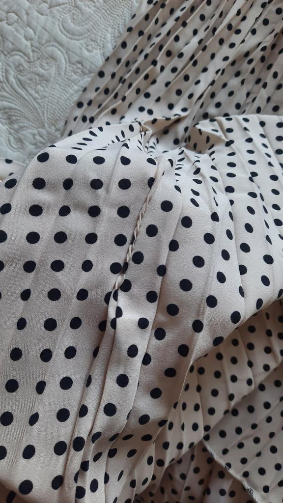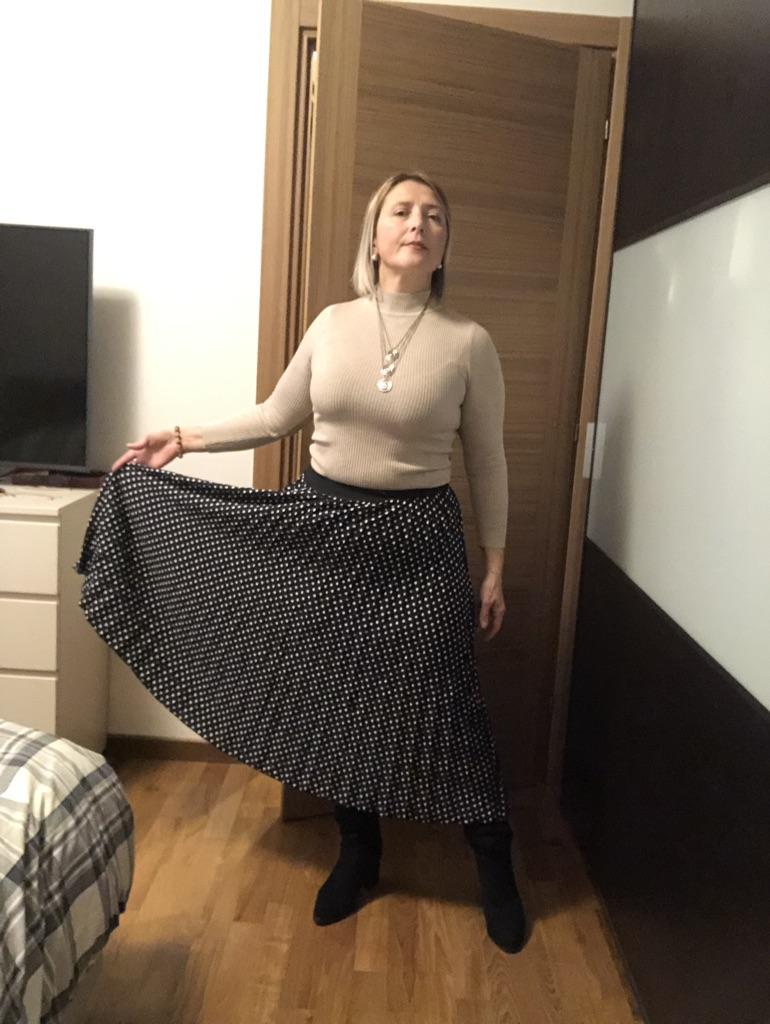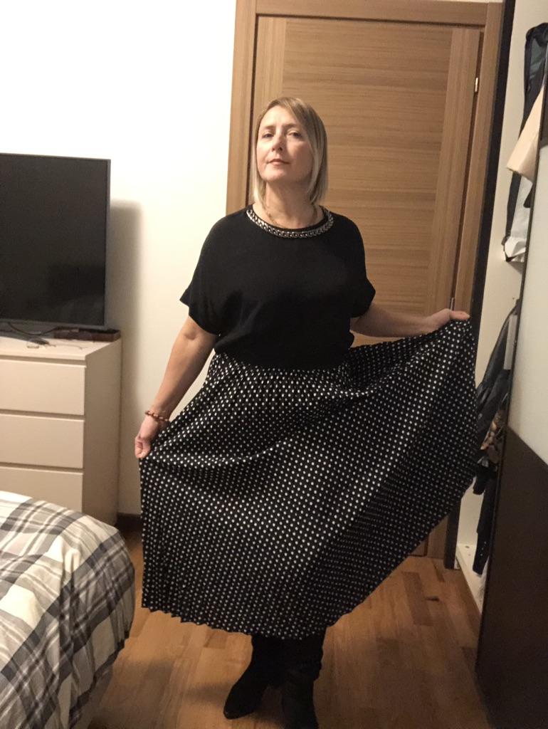 The skirt fits my OB-120 very well, the pleats lie nicely, it doesn’t make me look fat, the elastic is a little tight, I’m going to sew on another one with a larger volume so that it doesn’t press, but I wear it like that. The fabric is good, light, it was fine in the heat. I wore it with pleasure. I recommend.