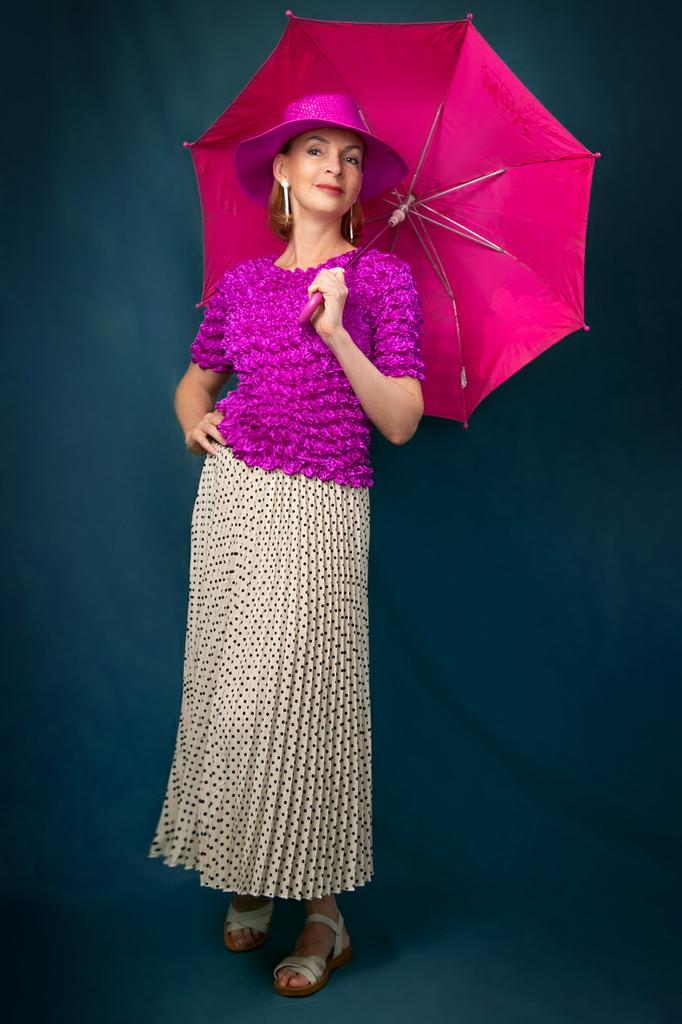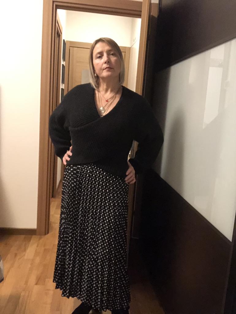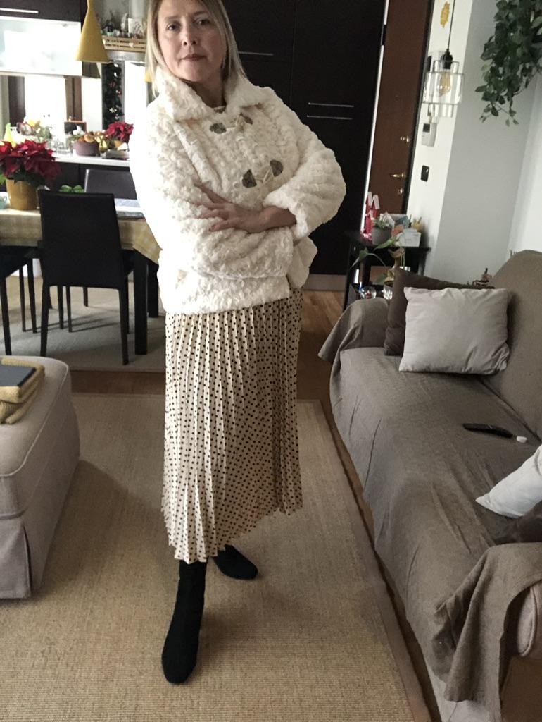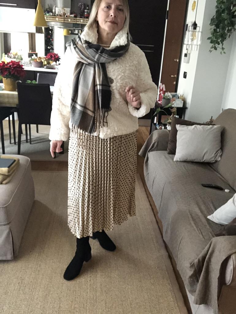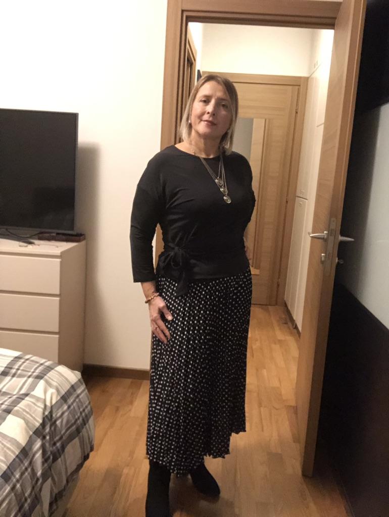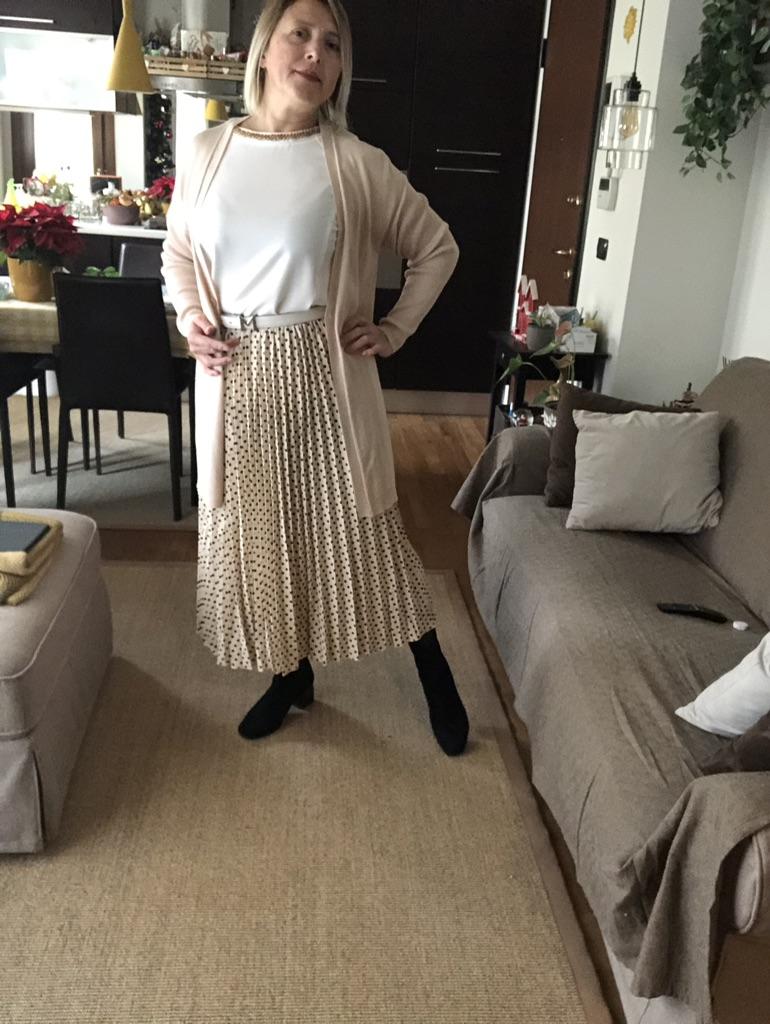 The skirt fits my OB-120 very well, the pleats lie nicely, it doesn’t make me look fat, the elastic is a little tight, I’m going to sew on another one with a larger volume so that it doesn’t press, but I wear it like that. The fabric is good, light, it was fine in the heat. I wore it with pleasure. I recommend.