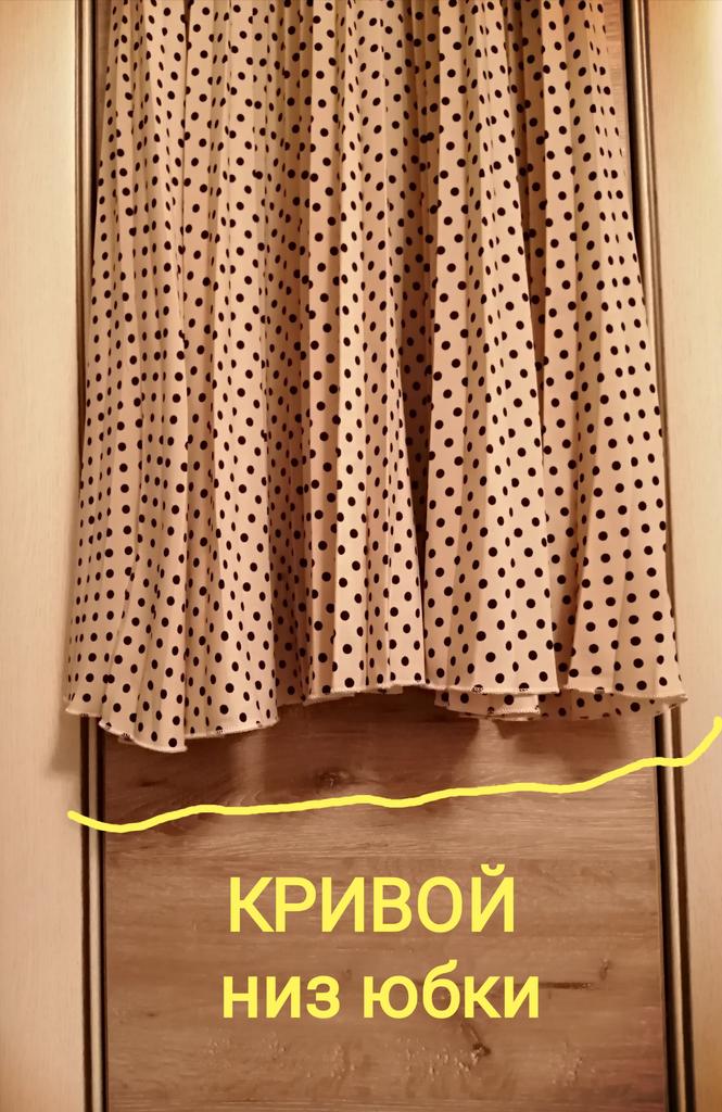 Very sloppy tailoring. The hem of the skirt is not straight. The folds are located obliquely.