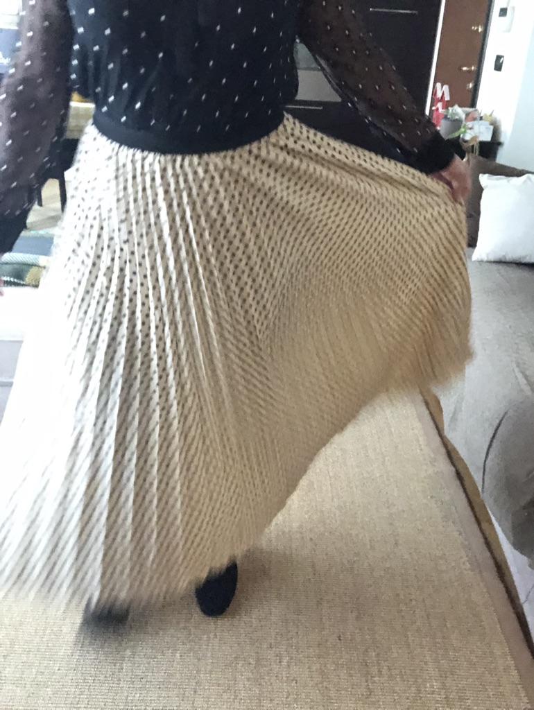 The skirt is very beautiful, it will look very nice with a white blouse. I'm happy with the purchase. I wore it in the summer and felt great. I recommend.