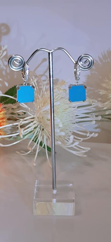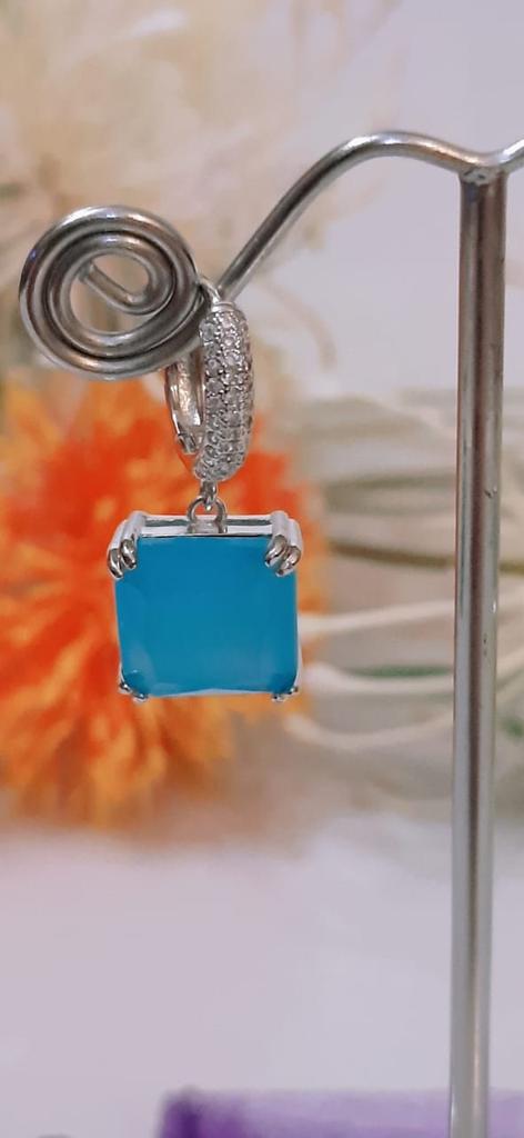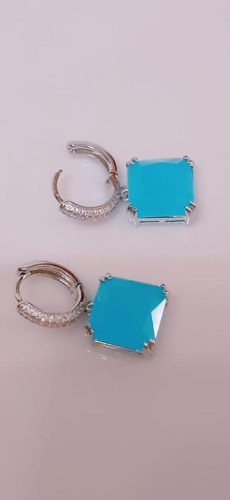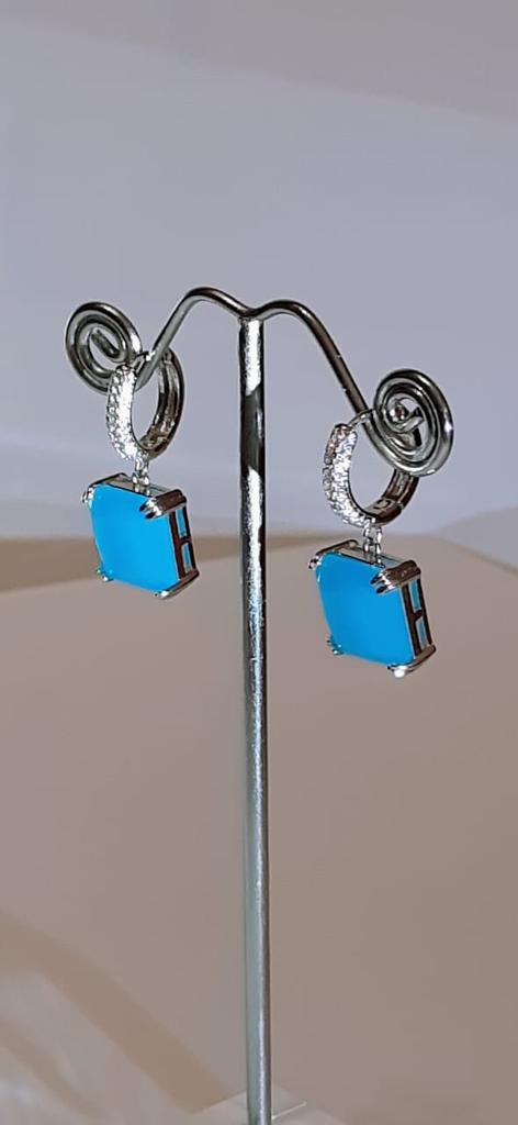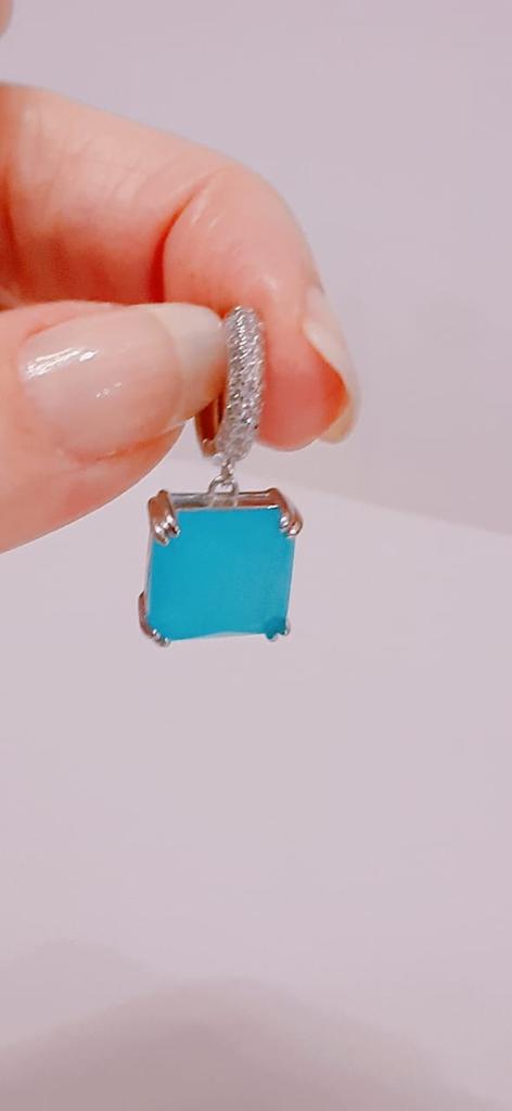 CMM Gorgeous Silver Color Princess Cut Cubic Zirconia Drop Earrings Party Jewelry