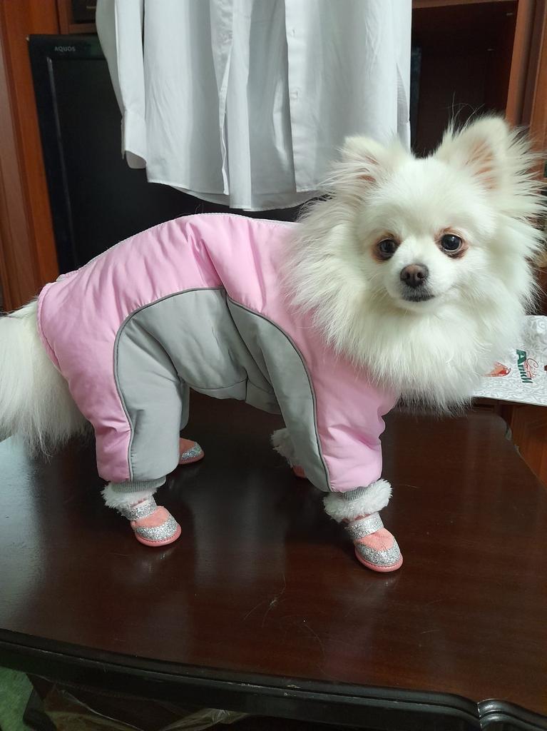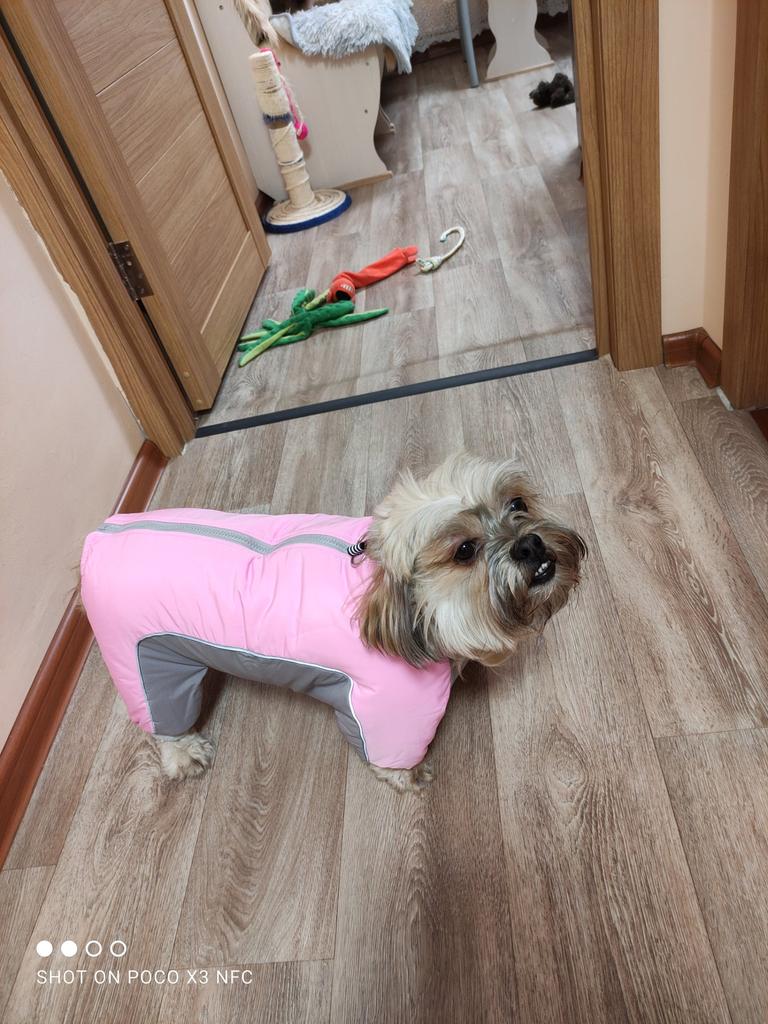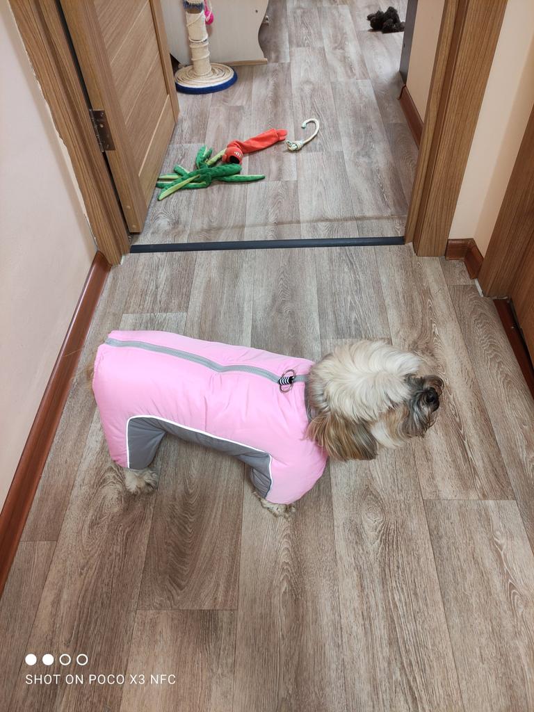 Wonderful, soft inside, beautiful. 4 kg per dog. Very good accessories. good quality castle Sewn reflective tape on both sides It has a very nice color Monster cut Rubber bands on the limbs, which does not allow mud or cold to penetrate higher There is no foul smell It will suit both a boy and a girl I have an oval-shaped insert so that the boy can go to the toilet freely, which must be removed manually. Everything in this overall is carefully thought out in advance! Thanks πβ₯οΈ to the seller and Jum! I recommend it to everyone!