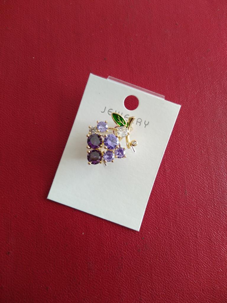 Blucome Cute Imitation Crystal Grape Brooch Female Trendy Fashion Pin Collar Pin Cardigan Fixed Clothes Accessories