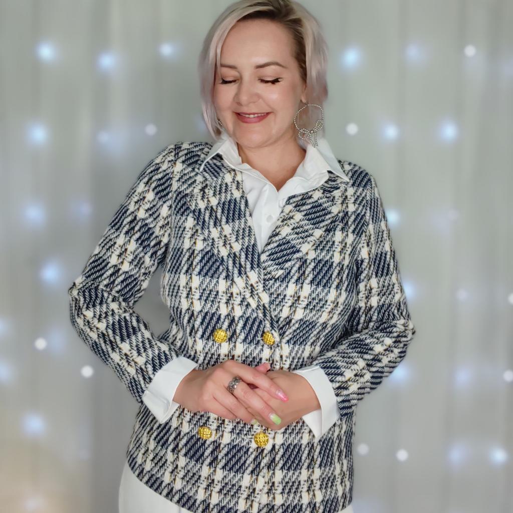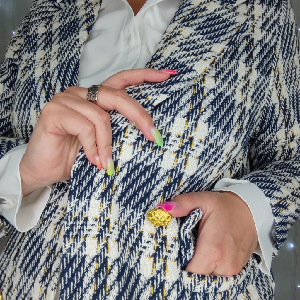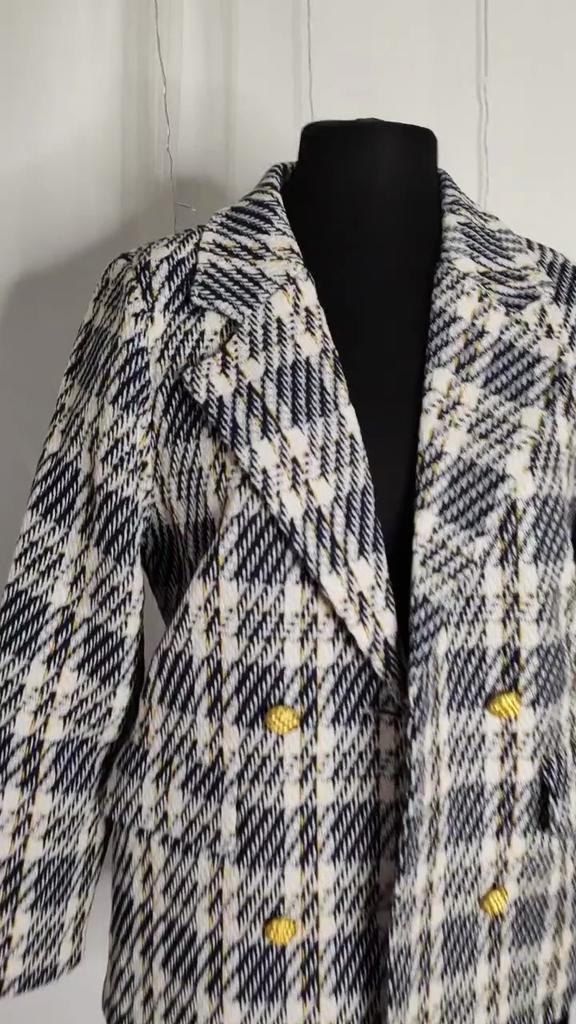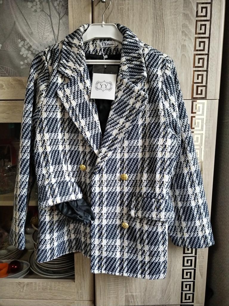 Winter Fashion Double Breasted Women Tweed Blazers And Jackets Blue Formal Plaid Clothes
