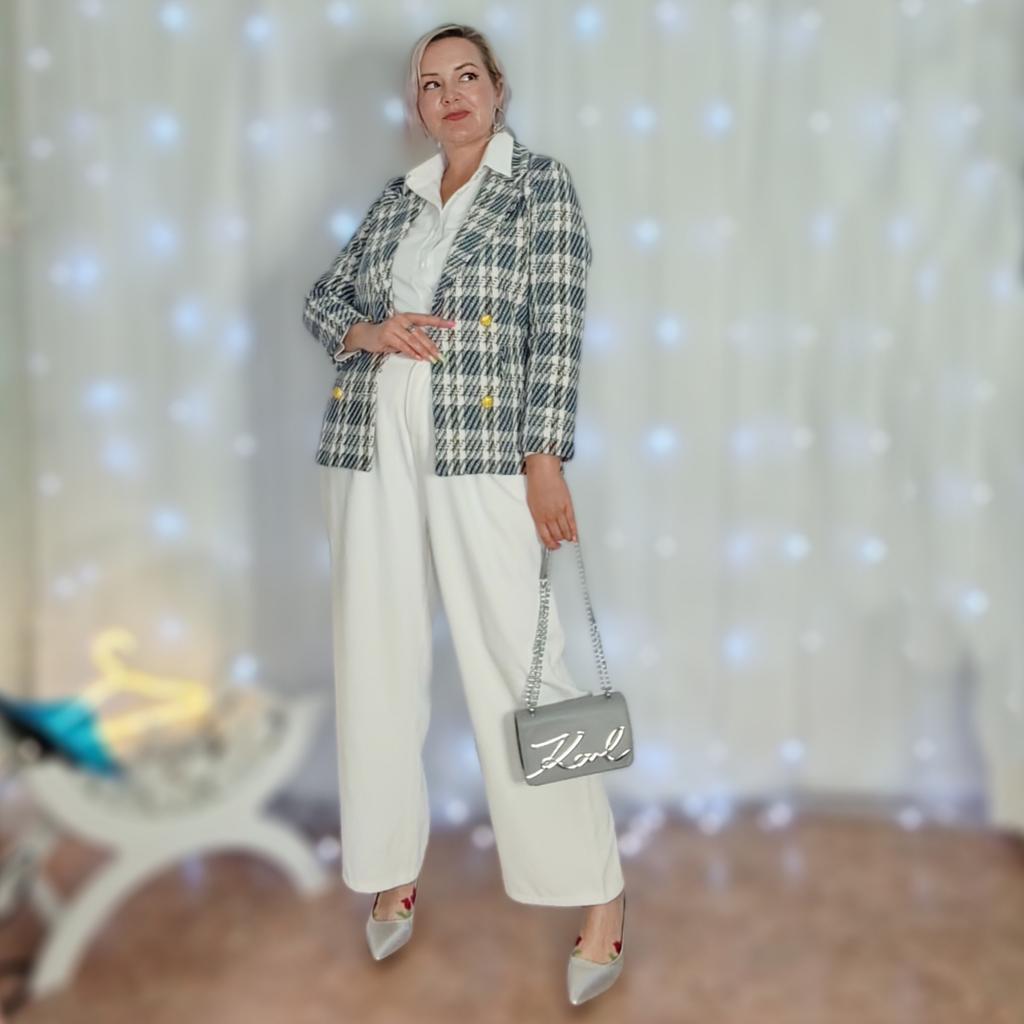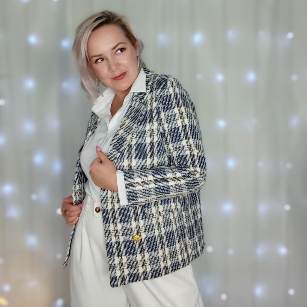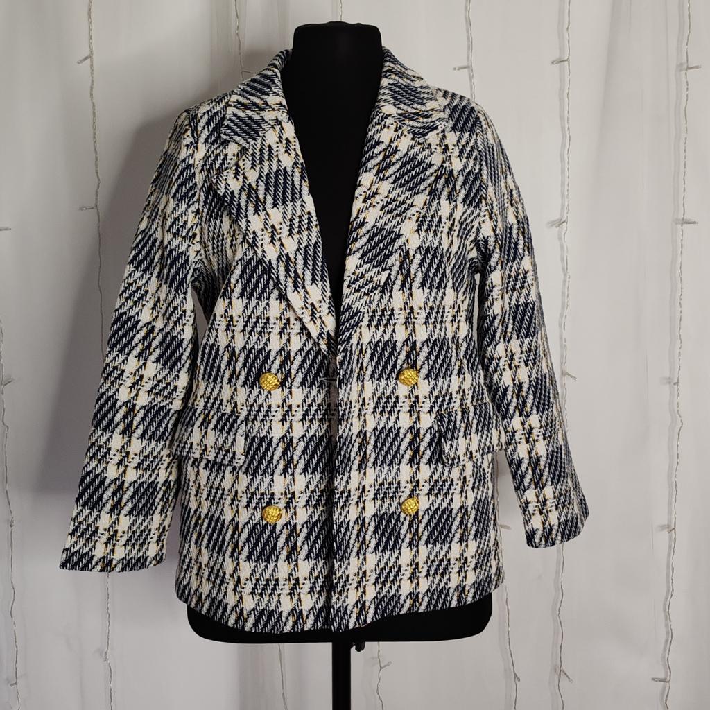 Winter Fashion Double Breasted Women Tweed Blazers And Jackets Blue Formal Plaid Clothes