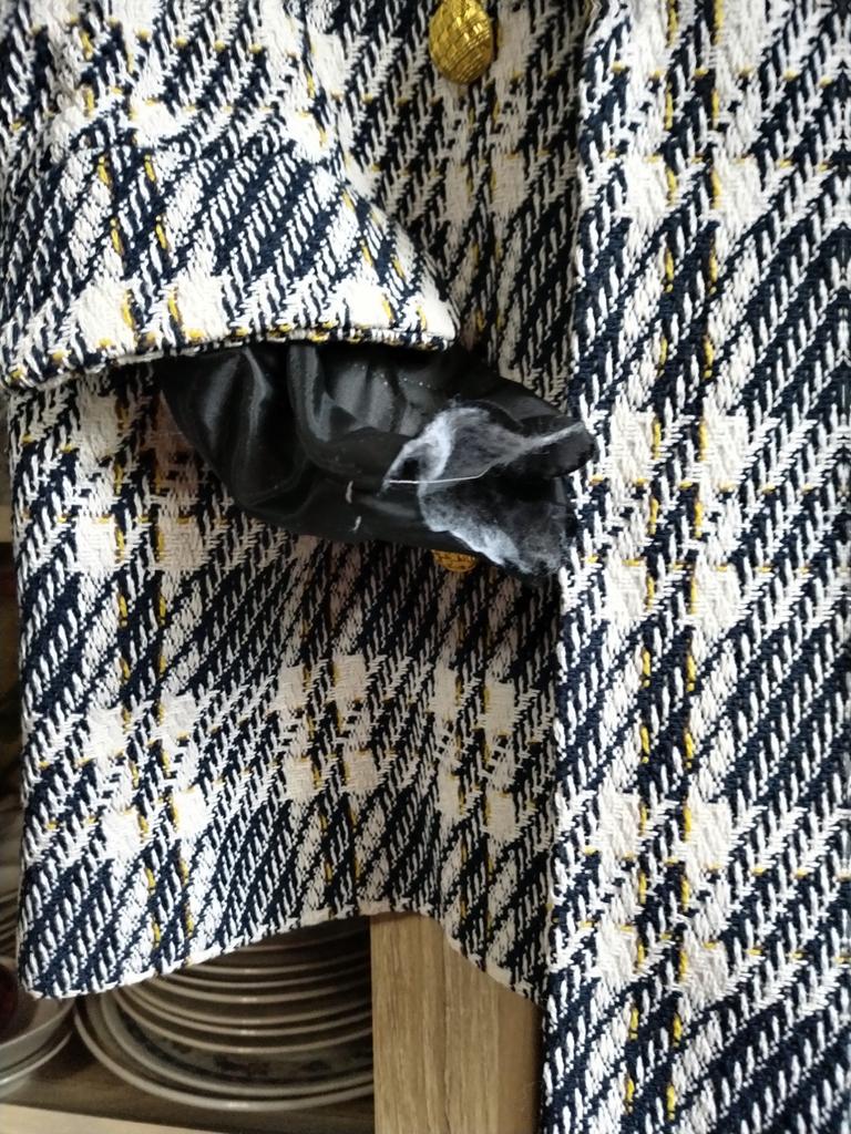 I didn't expect the jacket to be so full and heavy, I expected something lighter. I think the sleeves are a bit too short, the buttons will probably fall off soon, the threads are definitely too weak!