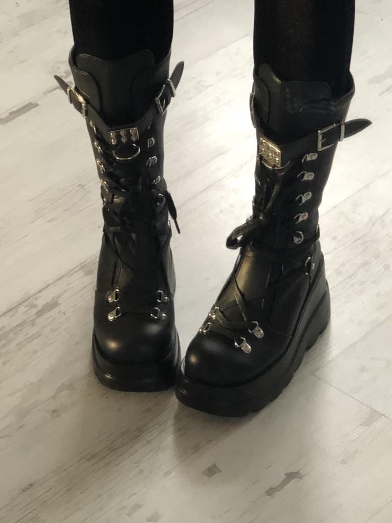 Gothic Style Platform Women Mid-calf Boots Winter Wedges Comfy Women Motorcycle Boots Shoes