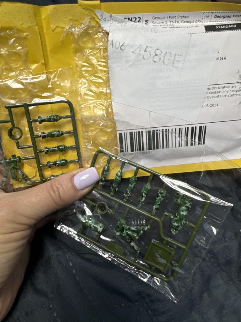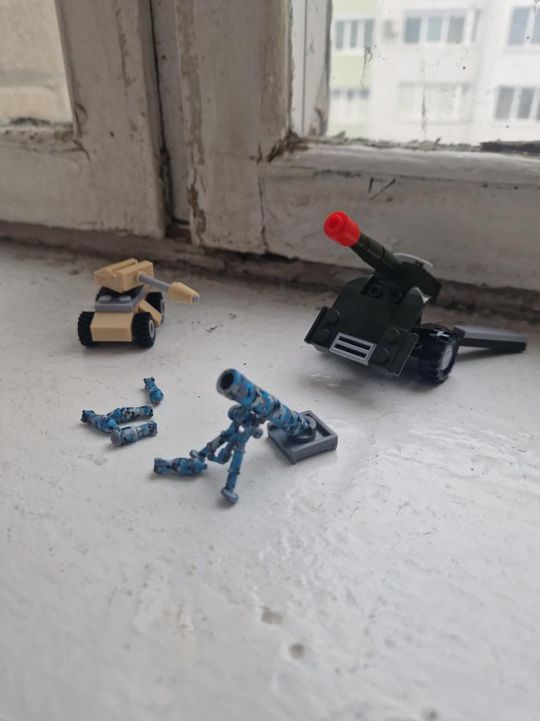 A very small toy. The size of a Lego man. Shoots conditionally)