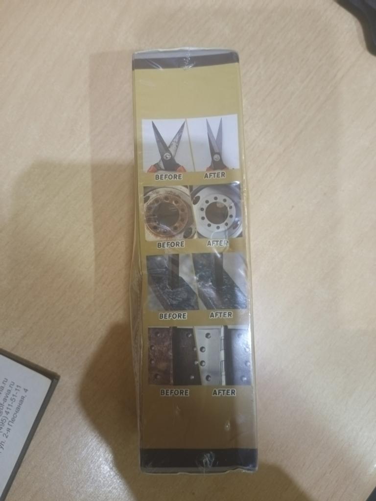 Complete rubbish. Not instantly, not in an hour, this liquid didn't even touch the rust. It just dried and that's it. The liquid is odorless, forms a small foam when shaken, and when applied to rusty metal, no interaction reaction occurs. It feels like it's just a soapy water solution. The bottle itself is slightly different from the photo on the website.