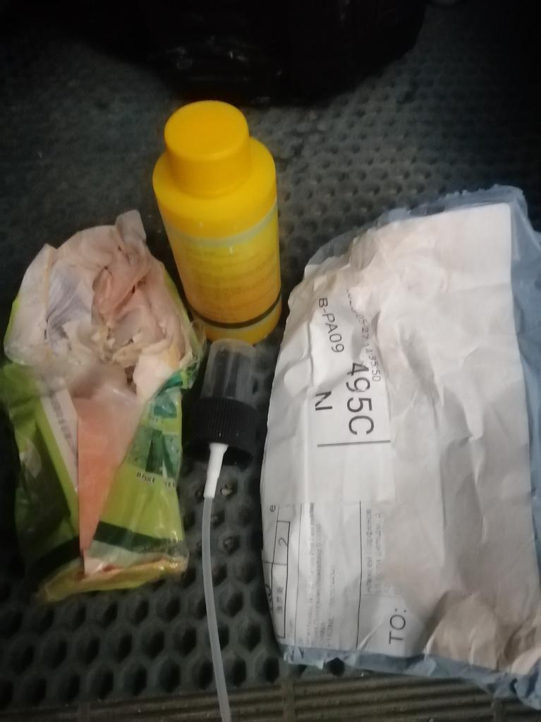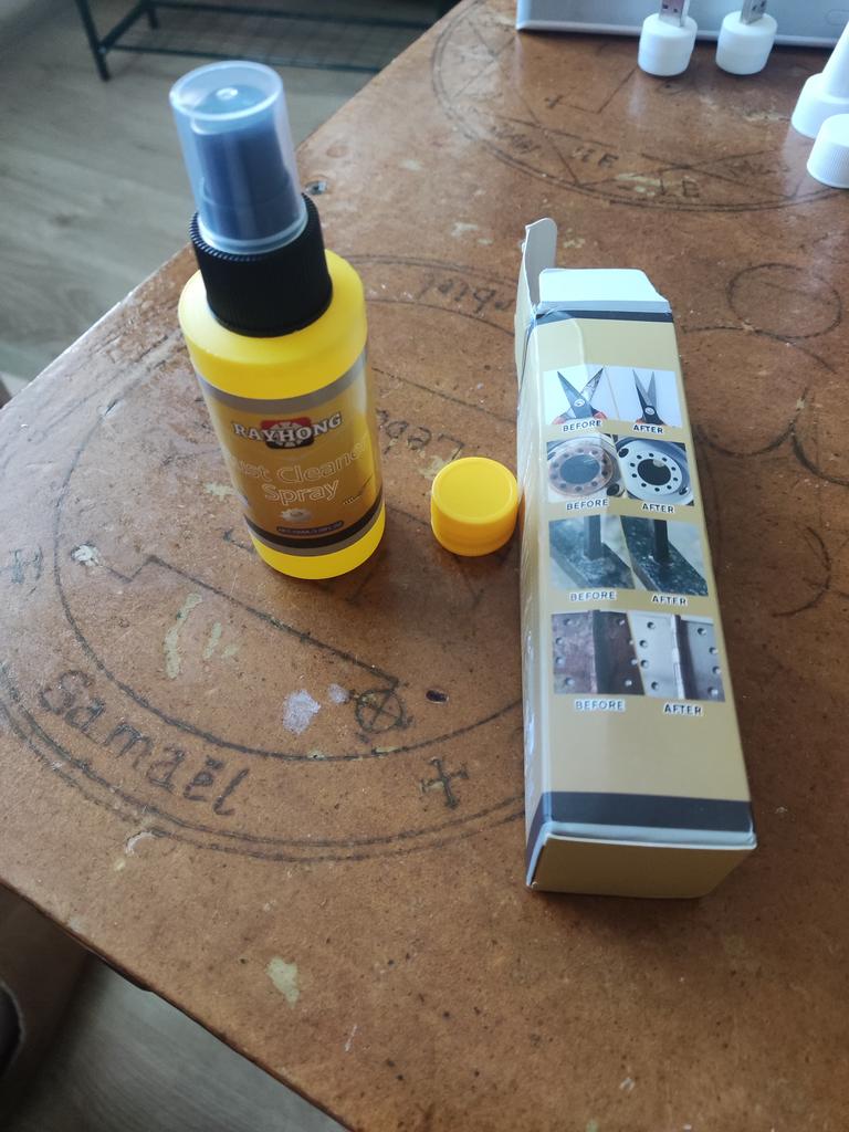 The rust remover spray has almost all spilled out, but otherwise everything is fine.