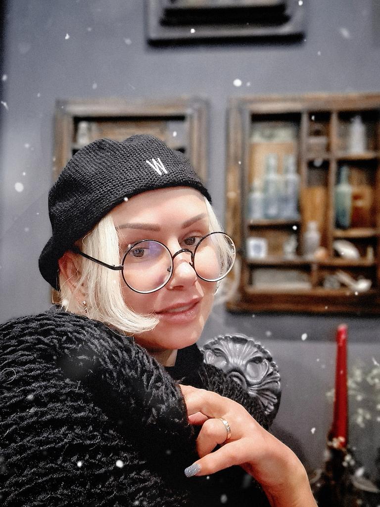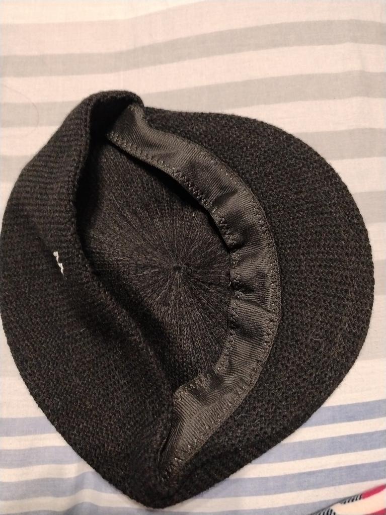 Knitted beret with a visor, stylish, can be worn backwards. A little small as the visor is glued to the top. But I recommend it!