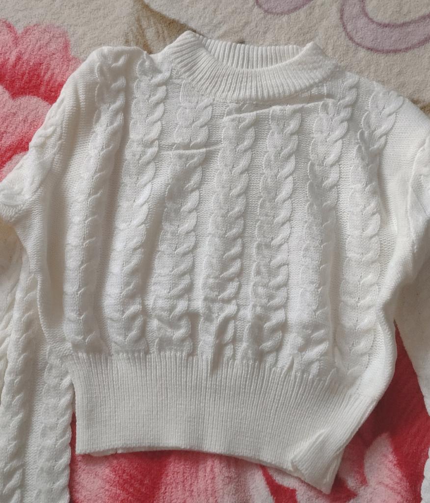 There was no size on the sweater, size s is a little mismatched, fits to size m. The quality of the sweater is not bad, I gave it a four because the elastic band at the waist is stretched in one place and it doesnβt look aesthetically pleasing.