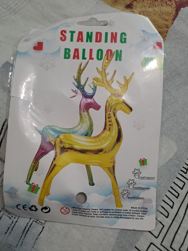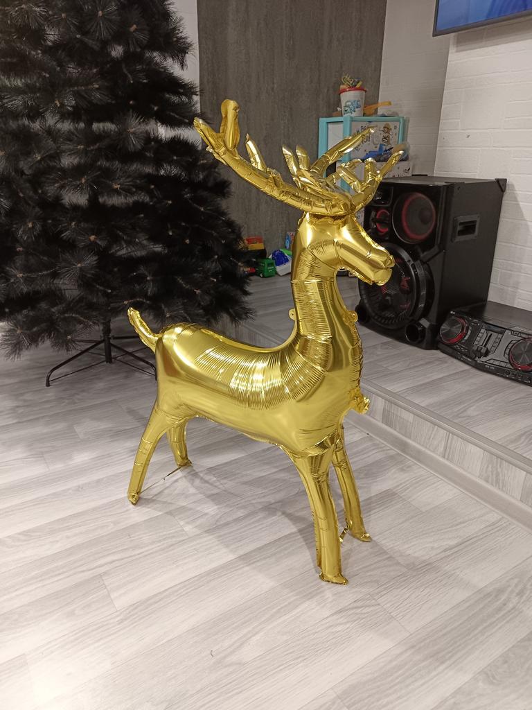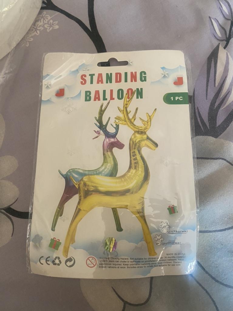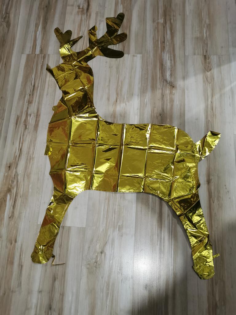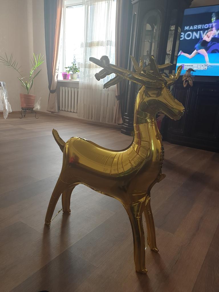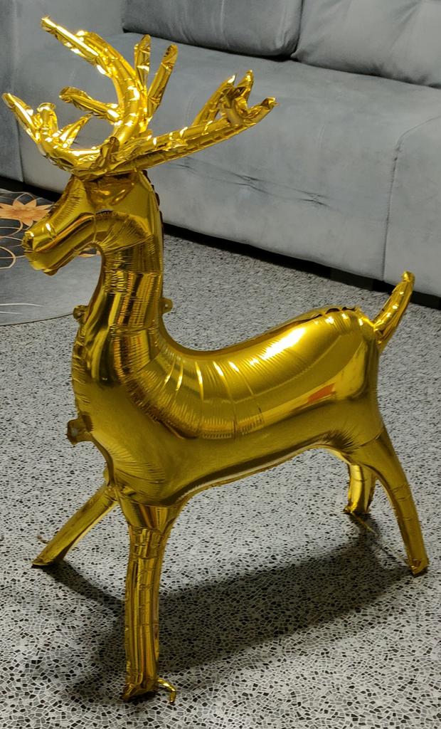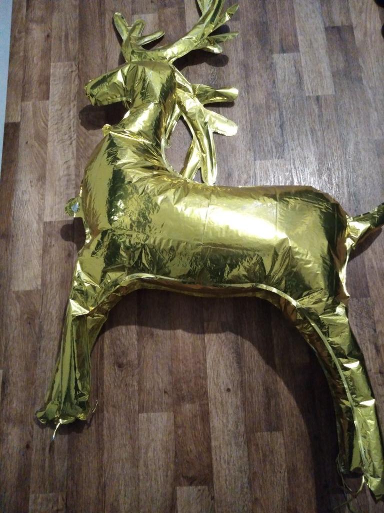 The product is damaged, it was glued so that it just came off. The product does not fully correspond to the description, the description should include a deer on 4 legs that can stand on its own. And this one has only two legs, and it is not even possible to inflate it, because it is damaged.