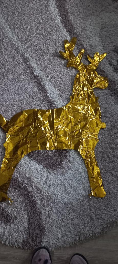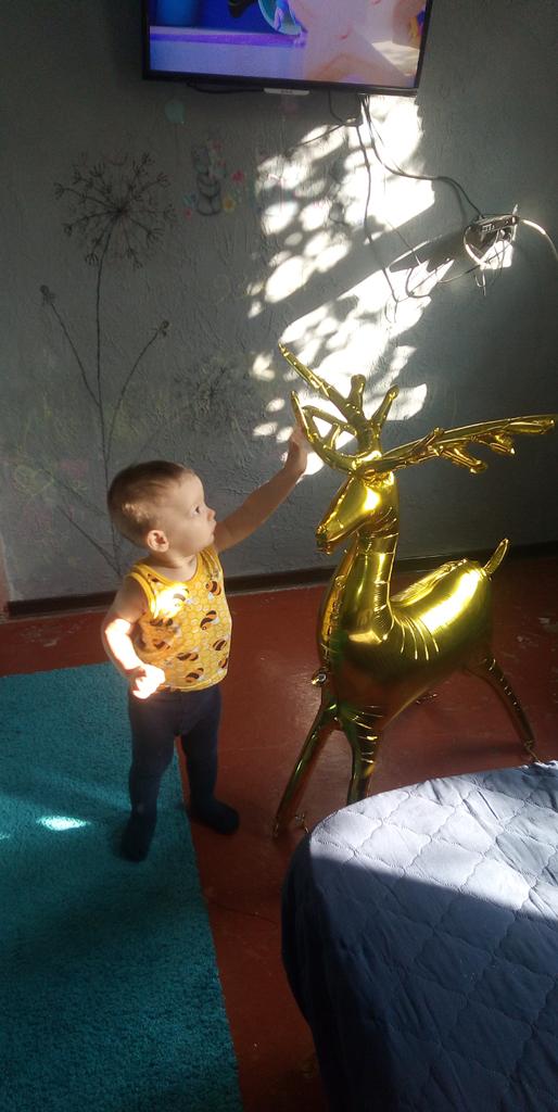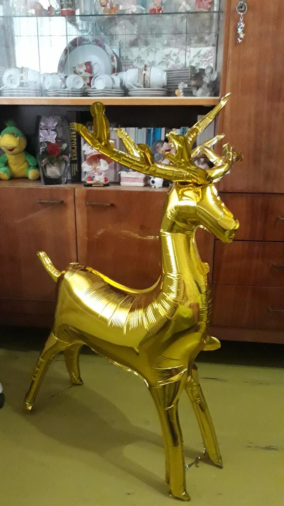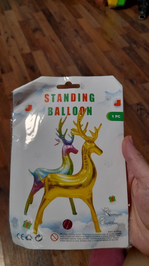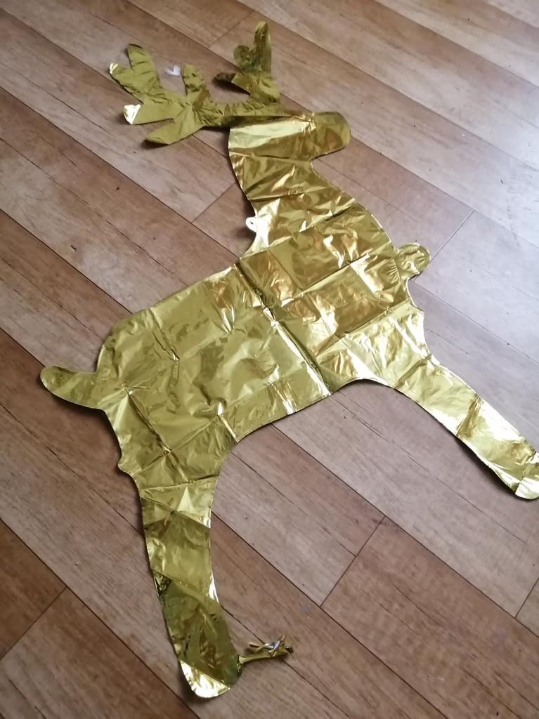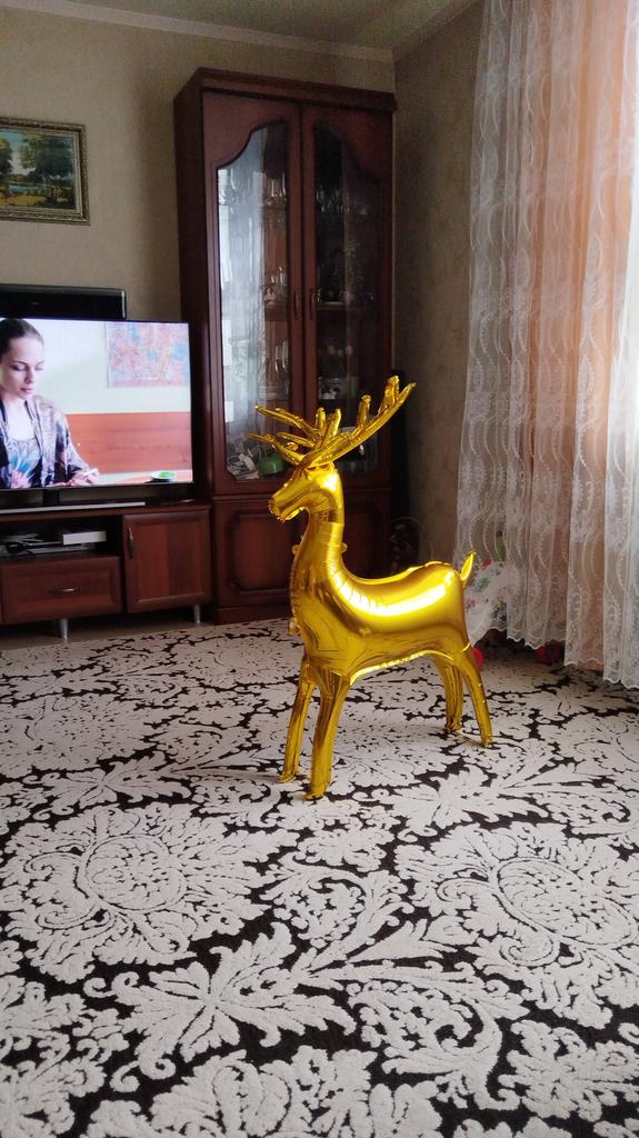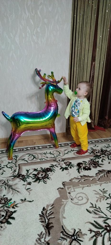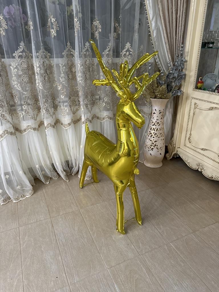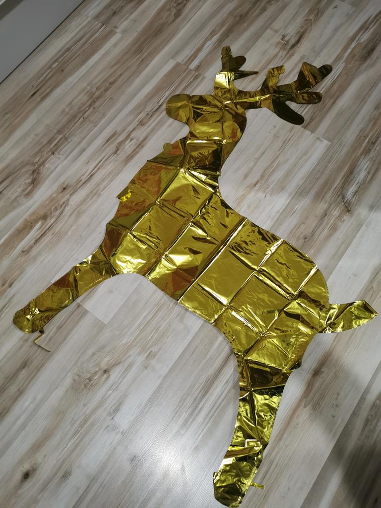 The product is damaged, it was glued so that it just came off. The product does not fully correspond to the description, the description should include a deer on 4 legs that can stand on its own. And this one has only two legs, and it is not even possible to inflate it, because it is damaged.