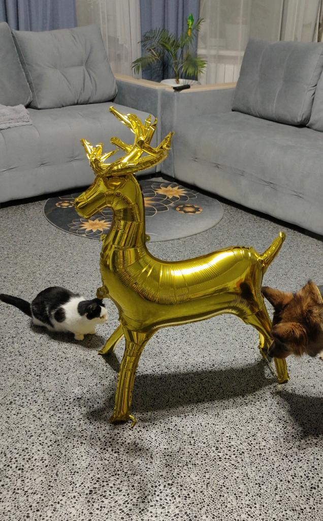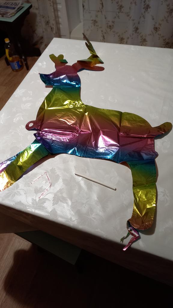 At first I thought it was a deer with 2 legs, but when inflated, 2 more appeared))) they were glued together. Looks very cool 👍🔥. I recommend to buy