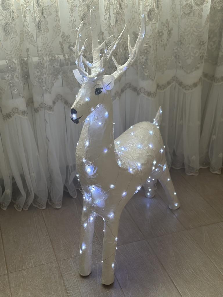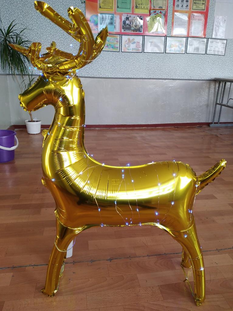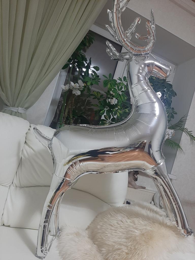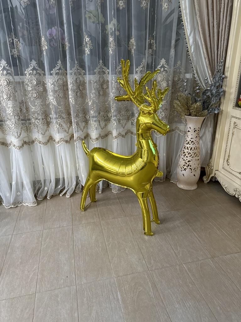 Very beautiful inflatable deer! Size 121 by 83. I recommend. Wrapped in a garland.