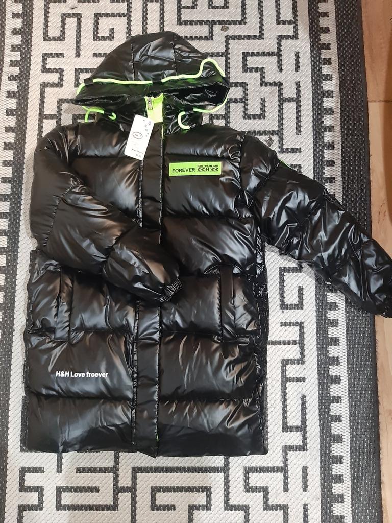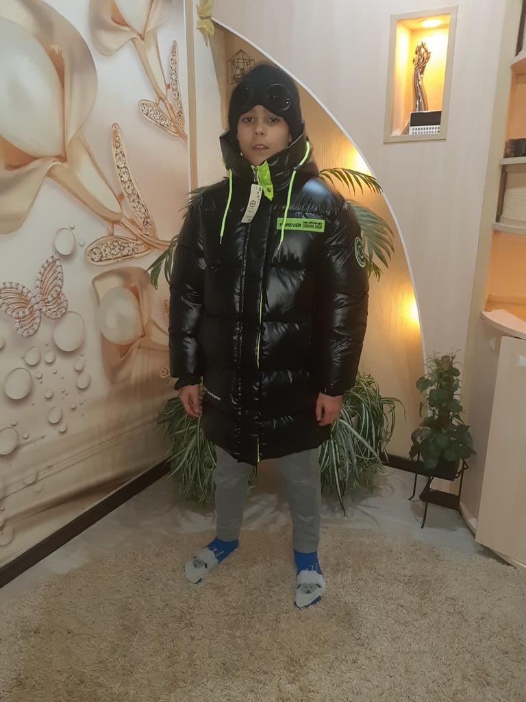 Children's Mid-Length Down Jacket Fleece-Lined Warm Medium and Large Children Shiny Cotton Coat