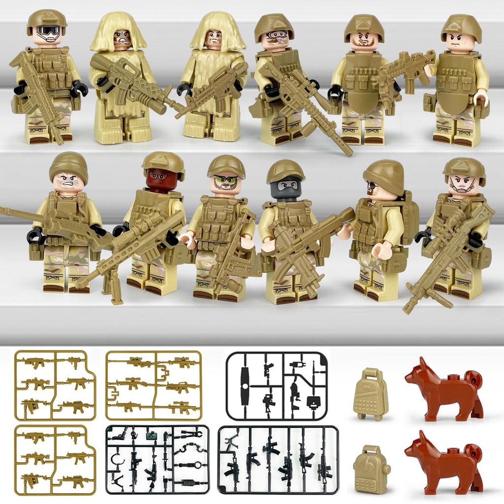 12PCS/set City Police SWAT Marines Warrior Minifigures Building Blocks Dolls with Accessories Brown Dog Children Characters Toy Boys Gifts
