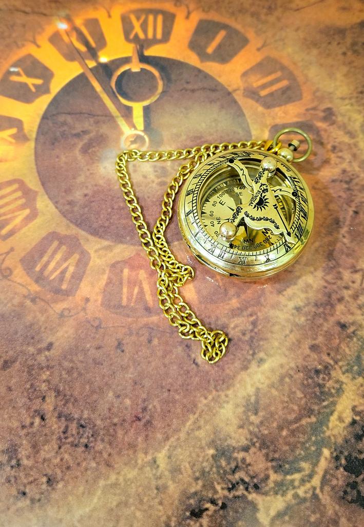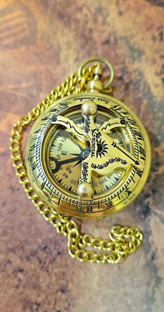Vintage sundial. Great item in case of an apocalypse! Can track time in sunny weather. There is a compass. Convenient chain, you can hang it around your neck. And the watch looks very suitable for this! I haven't mentioned yet that they are very beautiful?! That's very true. They are made of brass, but they look like gold! And all this is in vintage style, quite atmospheric.. In short, buy it - you won't regret it! A great gift for a man, and not only.