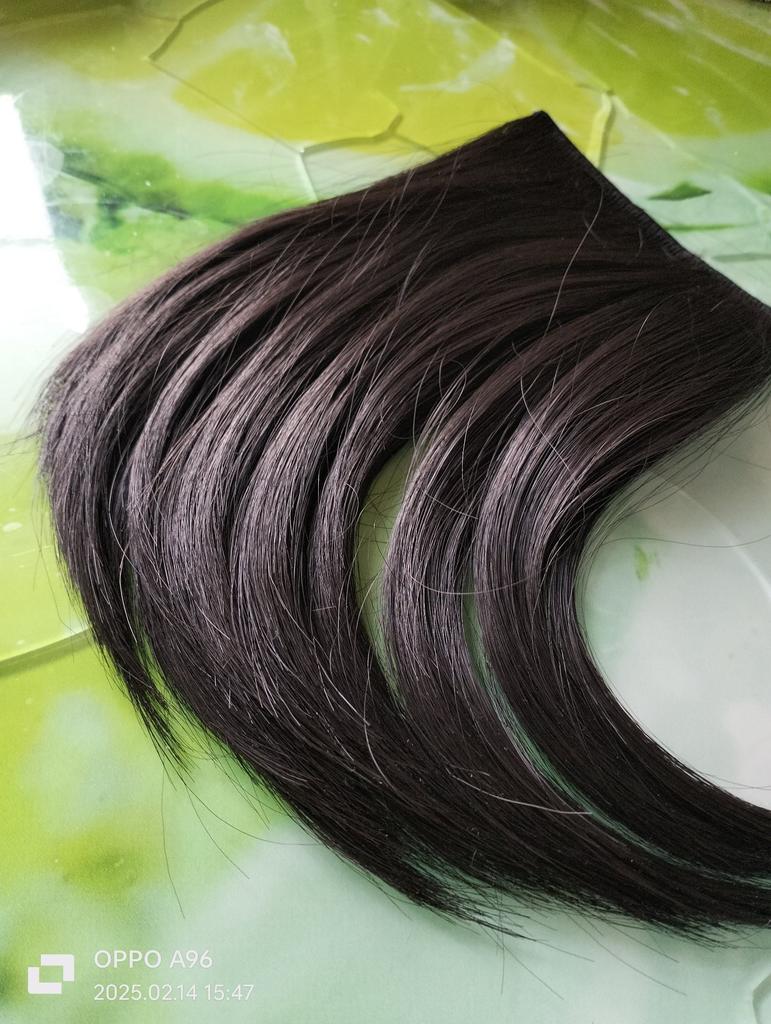 The product corresponds to the description, the color is not different from my hair, but there is more shine. There is only one problem and it is significant, it is not at all clear how to attach anything to the hair, there is nothing for this.