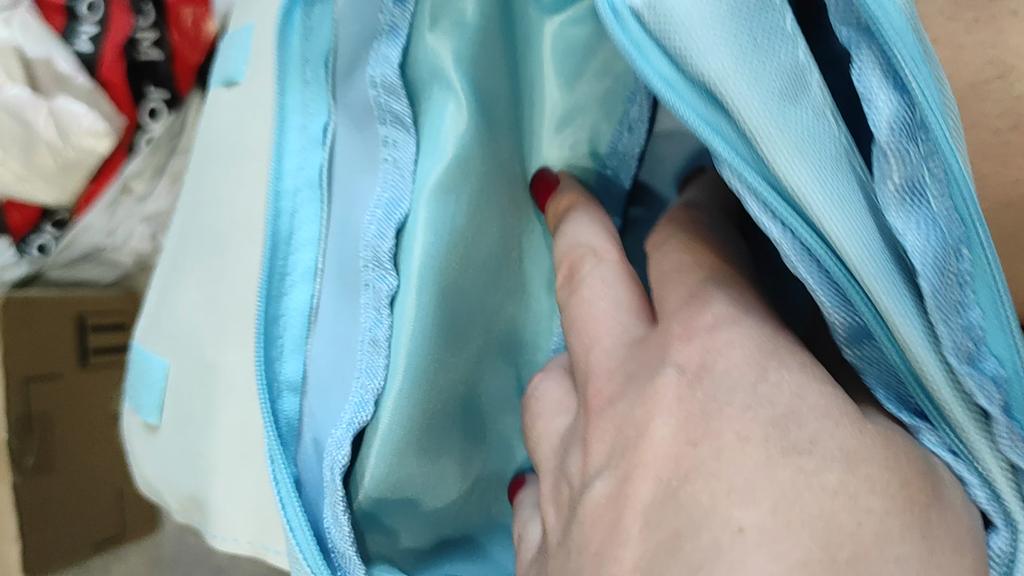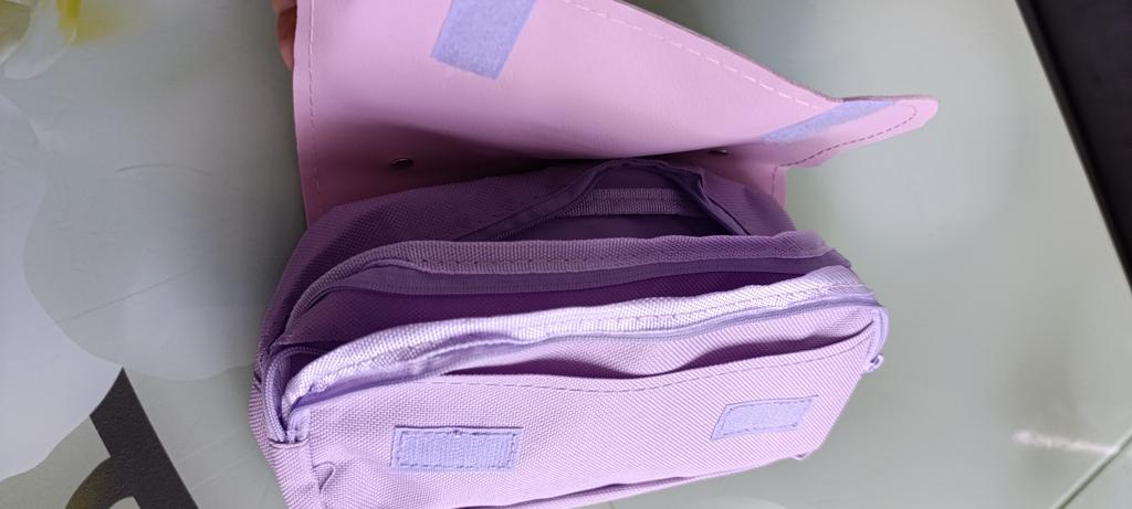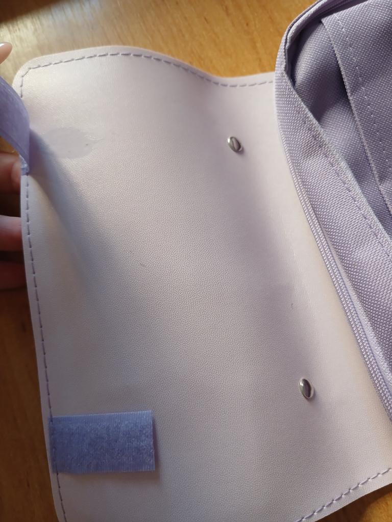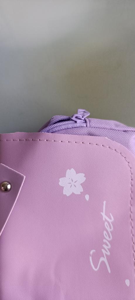 Came late. Quality at 4. Has a strong unpleasant smell. After airing it disappeared. The pencil case is large with 3 compartments with fasteners. The child is satisfied.