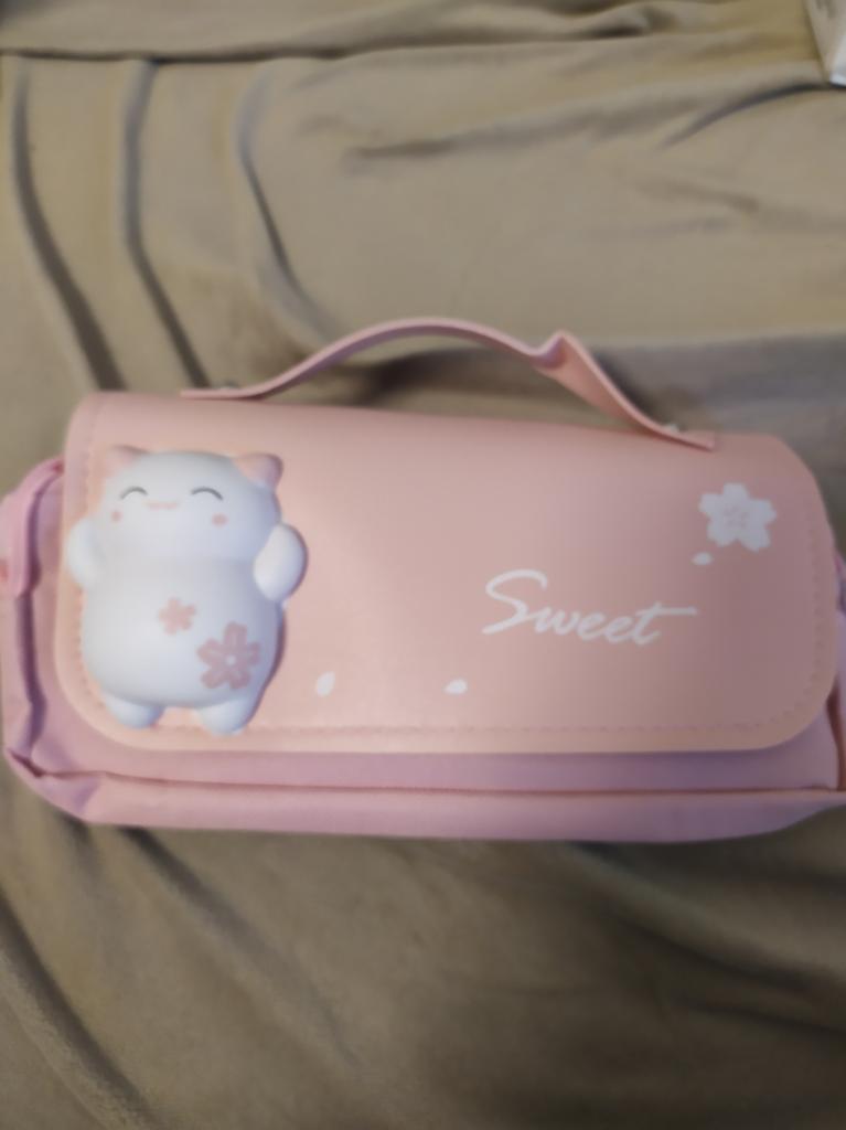 Cute Cat Decompression Pencil Case Big Pencil Box Portable Girls Pen Bag Double Layer School Pouch Kawaii Stationery Pensil Case