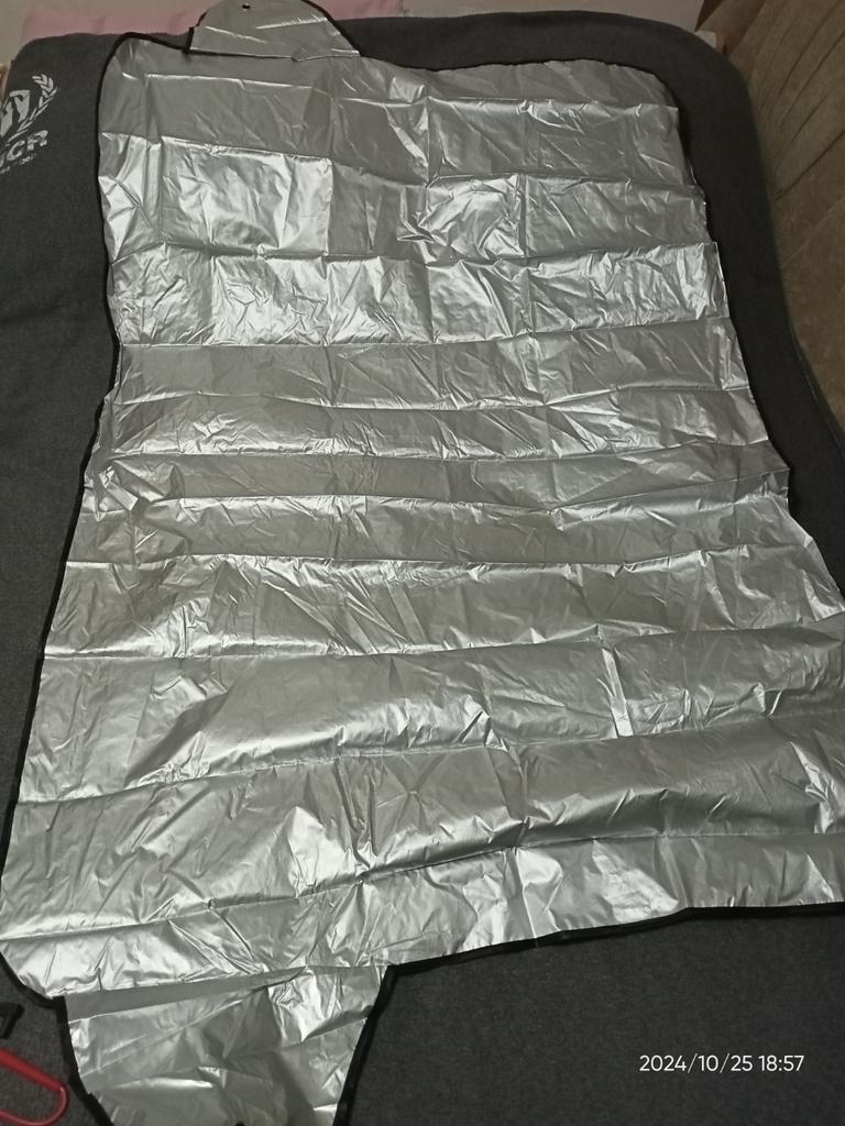 A thin piece of raincoat, which has a silver coating on one side. It can be squeezed into a ball (it is so rough). For such money as they sell, it is not worth taking. I do not recommend