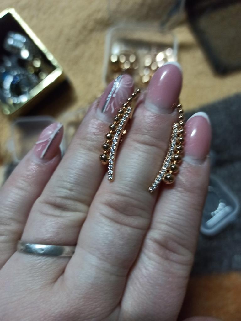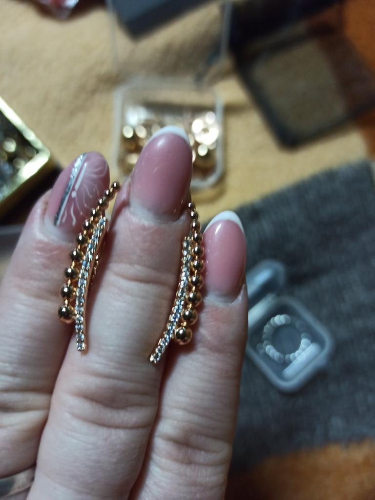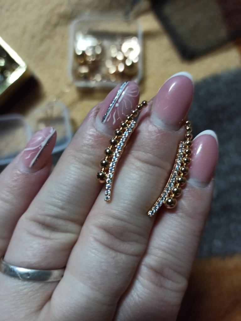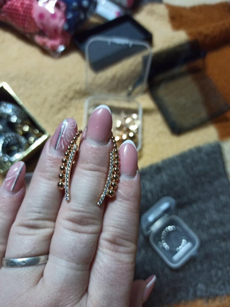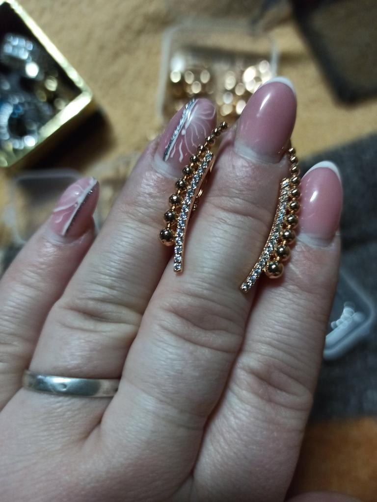 The earrings are simply a bomb-rocket, I liked them, they fit well and look stylish, I am satisfied, I ordered the same ring, everything came together, thank you all!!!