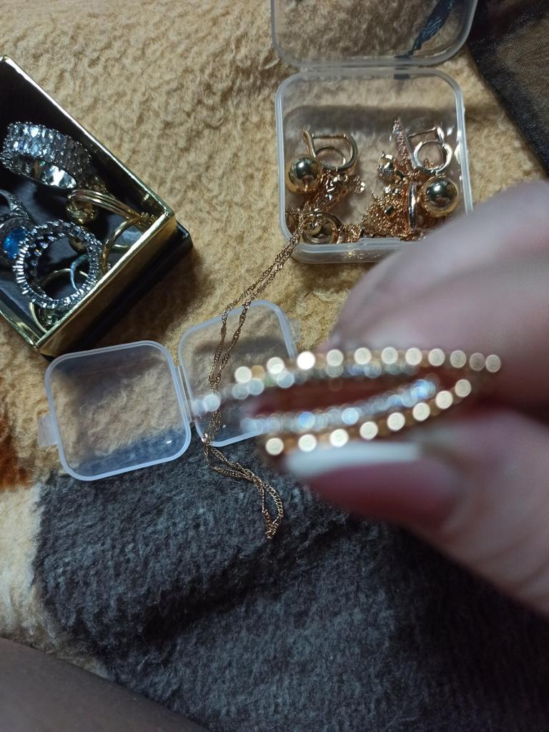 Very beautiful. The pebbles sparkle. The quality of the rhinestones is amazing. They look like gold, because the pebbles are not glued, as on a cheap one, but they are soldered with corners, like on a jewelry) The clasp is not tight (you need to wear it carefully ...