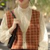 French Retro Green Plaid Striped Knitted Cardigan Vest Vest Women's Spring and Autumn Fashion New V-neck Sweater Coat Women