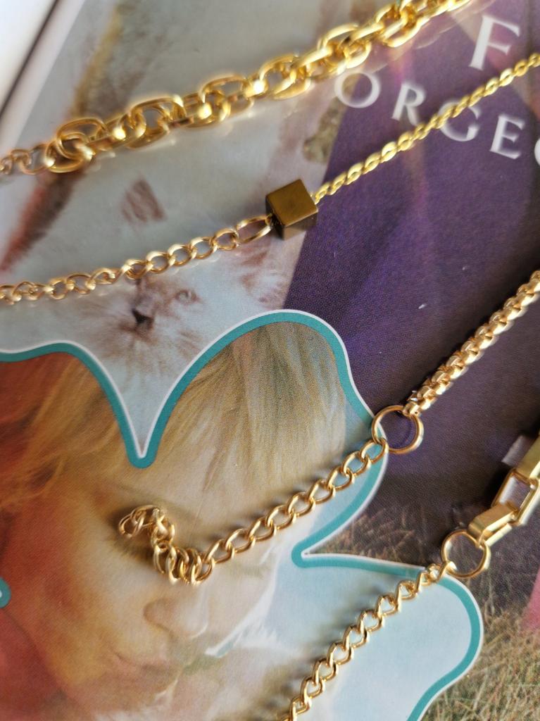 * Bracelets 4 pieces 🌺💗 . The arrival time in Spain was 17 days (it's great) well wrapped. . The seller sent a postcard and a pendant 😍 . The bracelets come in a box.. . Each one has its opening and its closure to put them on individually. The chains are gold plated, they weigh nothing and you can adjust it according to the size of your wrist. . 🌺 HAPPY SHOPPING 🛍️🛒🌺