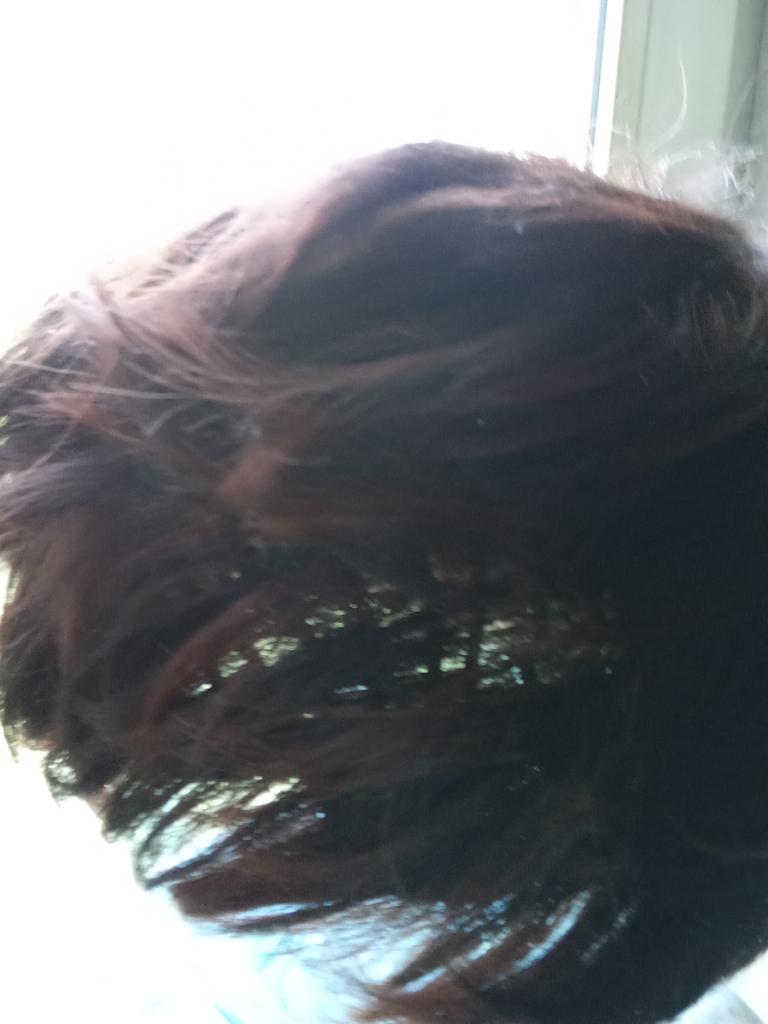 The color is darker than in the photo and much richer. The hair has an unnatural shine. It's been more than a month.