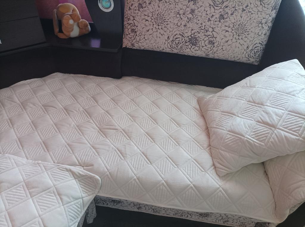 Since my husband always sleeps on the sofa during my night shifts, we urgently needed a cover. Because of sweat and wear and tear, the sofa no longer looks nice at this point. We used to put one of our thin blankets over it unprofessionally. However, these usually did not cover everything. So the sofa cover came on cue & I also like it 1 A. It is also available in many other colors! Shipping took 3 weeks.