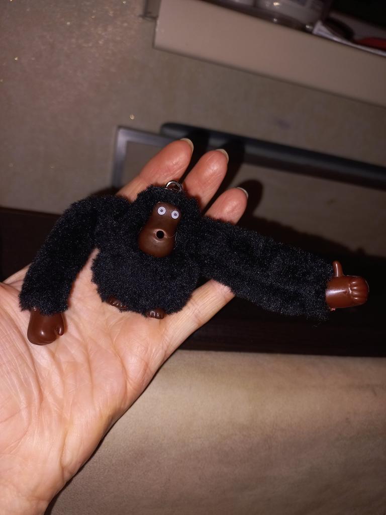 I took it for a child. Made to look like branded bags, I forgot the name, maybe they don’t exist anymore))) but the finger is stuffed into the mouth, although the monkey itself is rougher than the original
