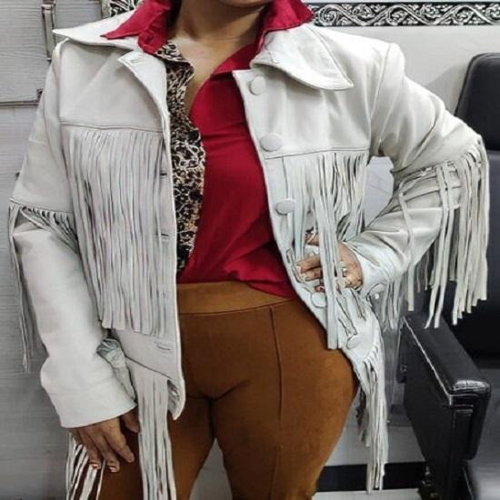 Women White Genuine Leather Fringed Jacket, Ladies Tassel Jacket, Party Jacket, Wife Gift | Western Style Fringed Jacket, Festival Jacket, Winter Jacket, Christmas Gift