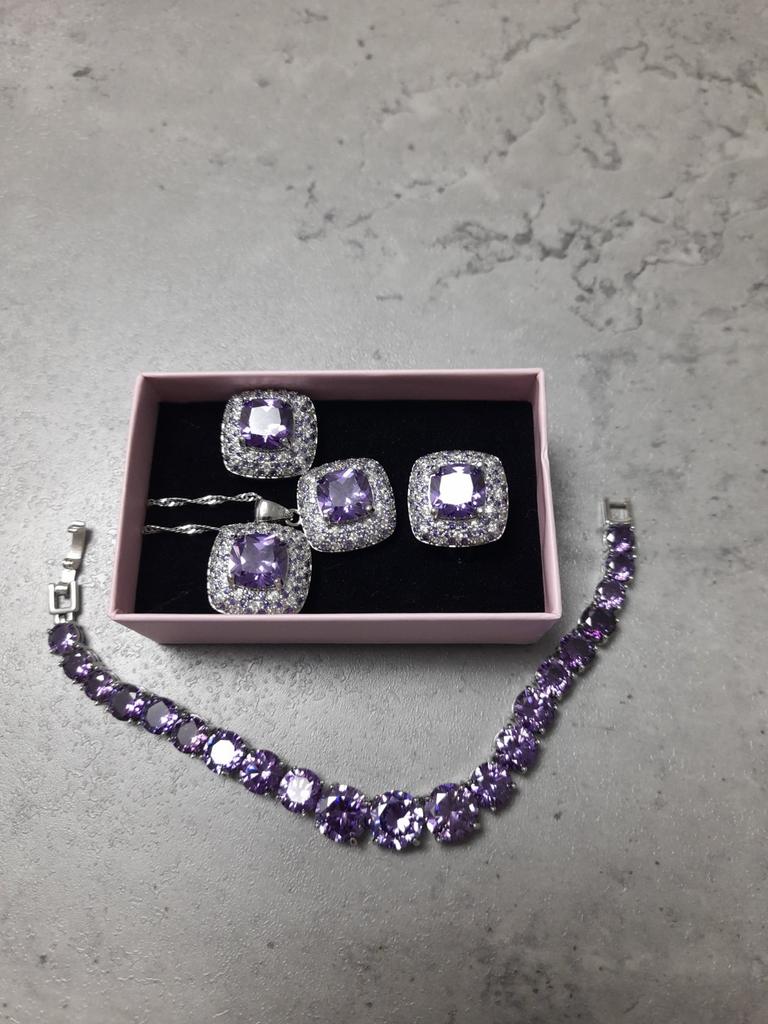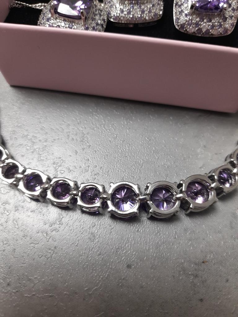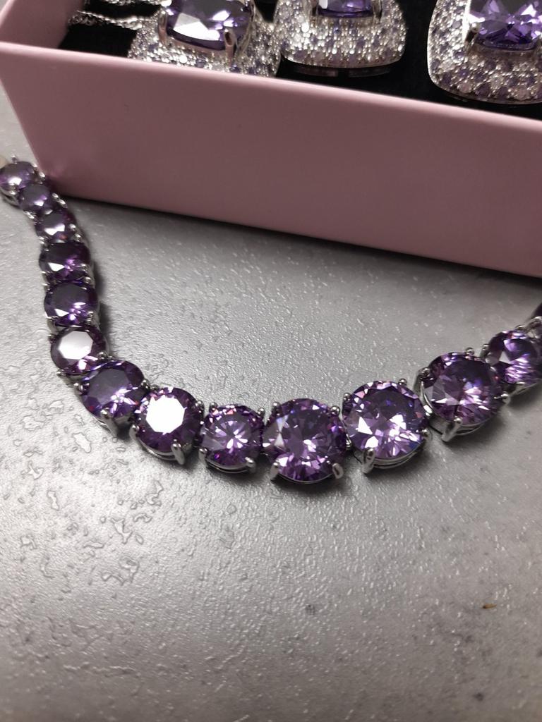 The Amethyst colour stone is very beautiful, the jewellry has been crafted exquisitely. Very very pleased with the set