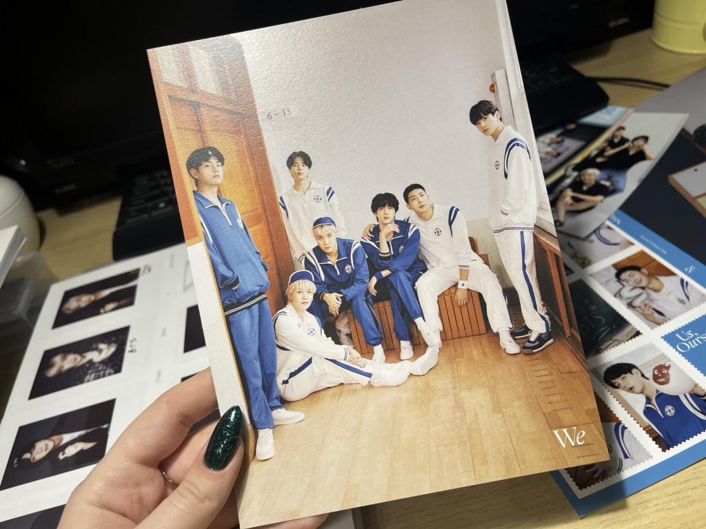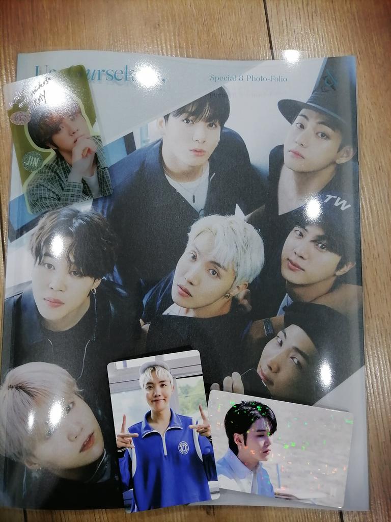 Thank you K-pop Merch for this wonderful photo-folio. Everything arrived safely, the package was sealed and intact, without scratches or damage. Thank you also for the gift photocard with V, also inside I got V ๐๐ฅฐ although my bias is Jiminie๐ but the package arrived exactly on V's birthday.