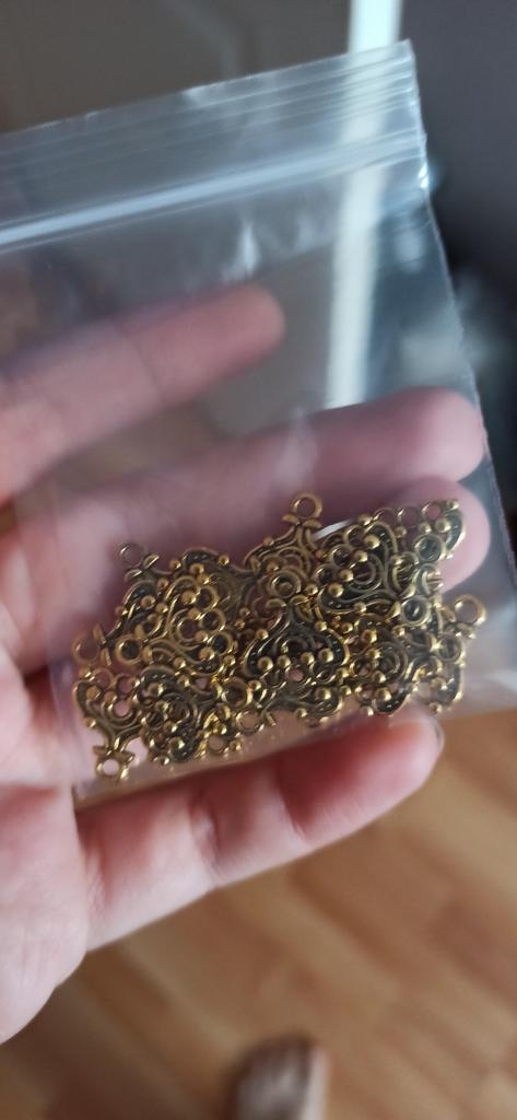 Beautiful connectors for clips. All goods are in stock. They shine like gold, not so "old" (as in the photo), so it is better to select gold fittings for them.