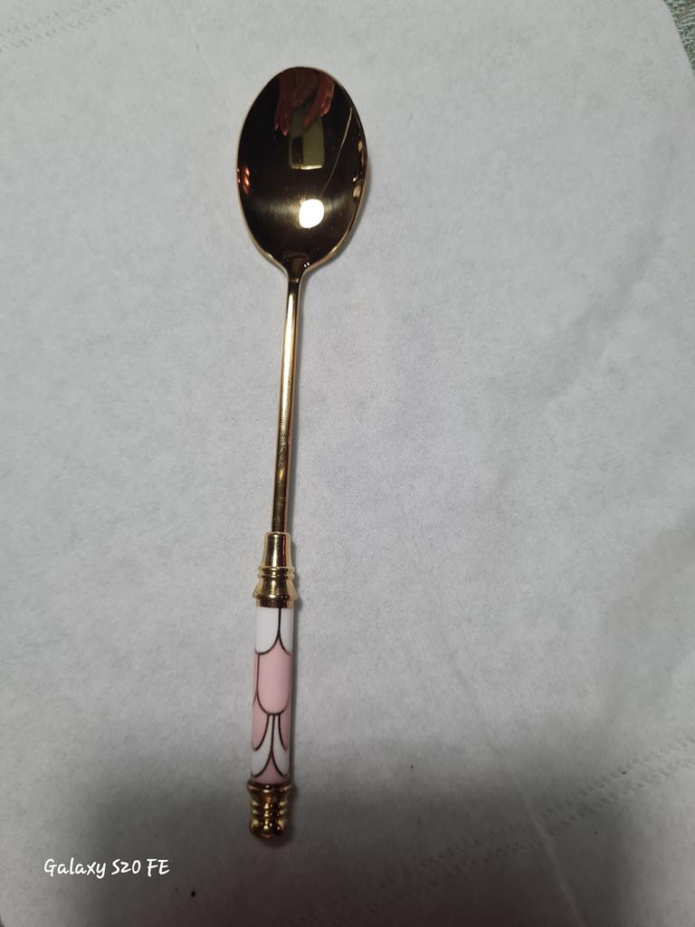 The gilding on the spoon is very yellow. I didn't like the color. I used to buy a teaspoon here; the color was more noble.