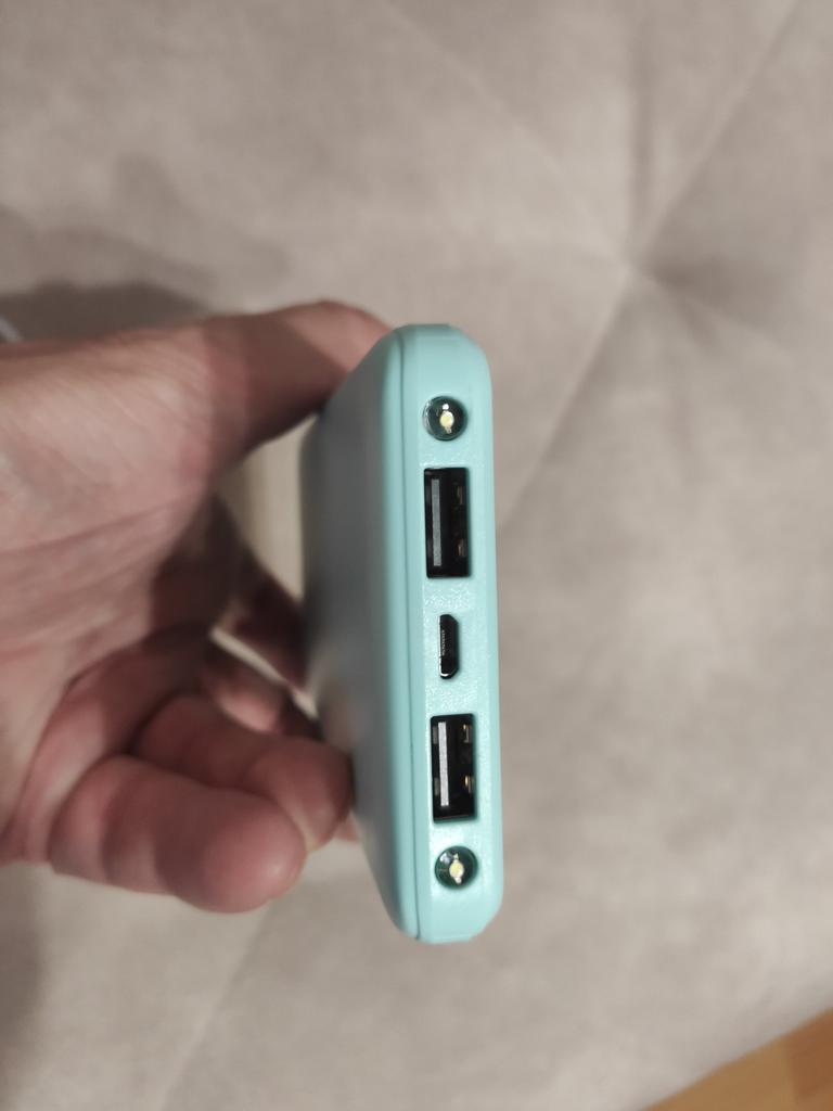 Inexpensive flat powerbank! But! Charges slowly There is a USB-C socket for charging.