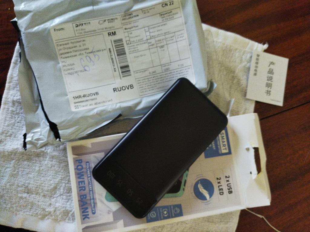 The goods arrived quickly, in 21 days. Well sealed, heavy. It was 75% charged. There is a flashlight. It gets very hot when you charge the phone. A 5000 mAh phone eats up 100% of the charge in one go, and it was 30%, the power bank is zero, but the phone is not 87%, so it’s doubtful that 20,000 is indicated. There is a ghostly hope that it will heat up 😜And that’s how it all works.