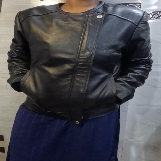 Noora Women's Black Biker Leather Jacket with Closure Zipper & Snap