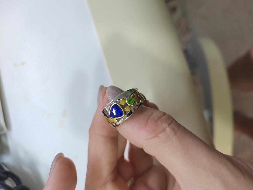 The ring is not bad, but very different from the photo. The blue stone is small, the rest are even smaller. The ring is beautiful. Minus a star for the difference in the picture.