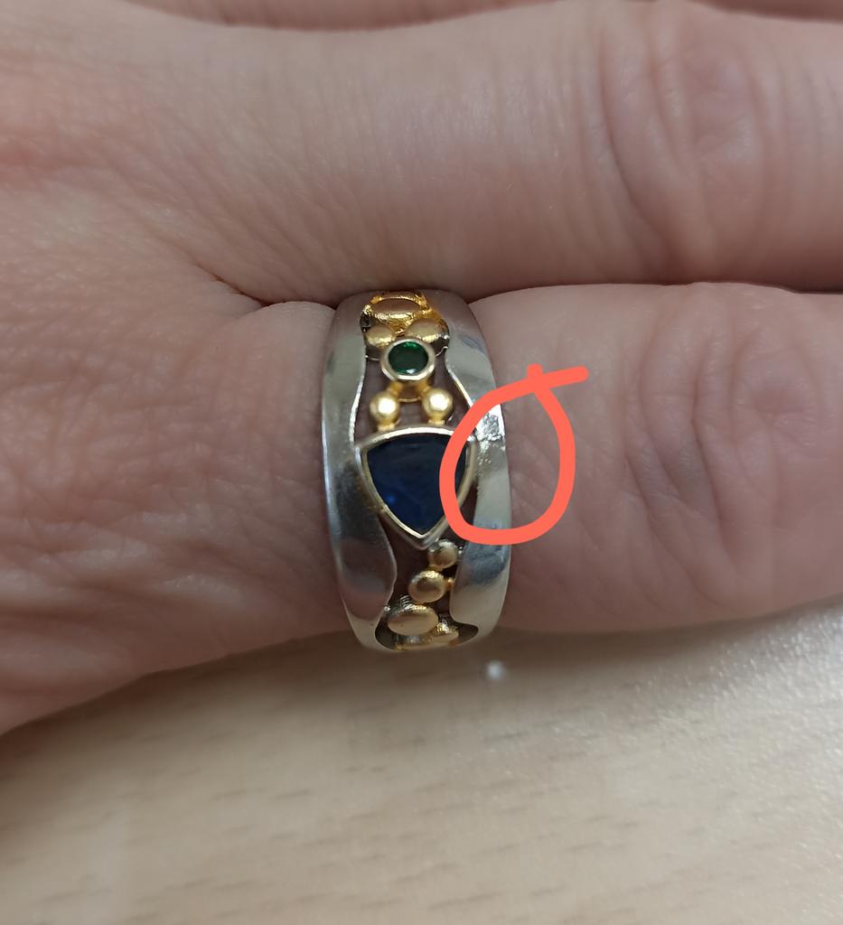 The casting has a flaw inside, but they tried to fix it with galvanic coating without polishing it completely. I hope it will be easy to wear, it shouldn't hurt. It's so stylish, so beautiful, I can't even believe that for such money, even with a flaw, you can buy such a ring. I won't give it to sharpen. It's a shame about the coating. Still 5 stars!