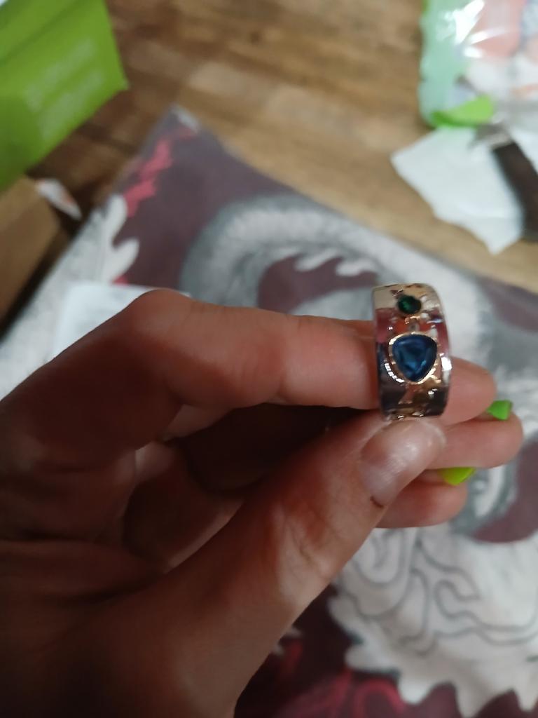 Beautiful ring! It arrived very quickly. Thank you! It doesn't look bad. The size is correct. Beautiful jewelry. I recommend it to anyone who likes to change their jewelry often. The price suits me.