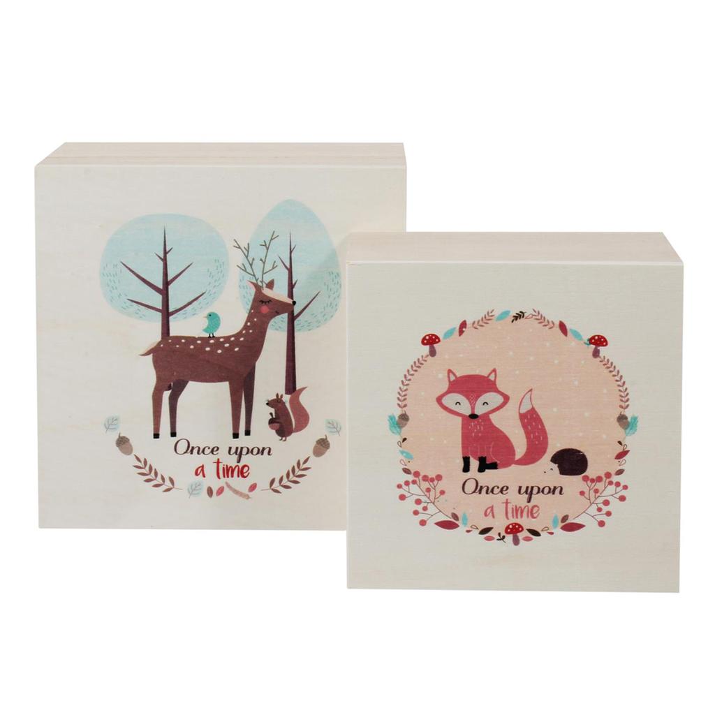 Les Trésors De Lily [A0546] - Set of 2 Wooden Nesting Boxes 'Once Upon a Time' Fox-reindeer - 18x18x8. 5 Cm