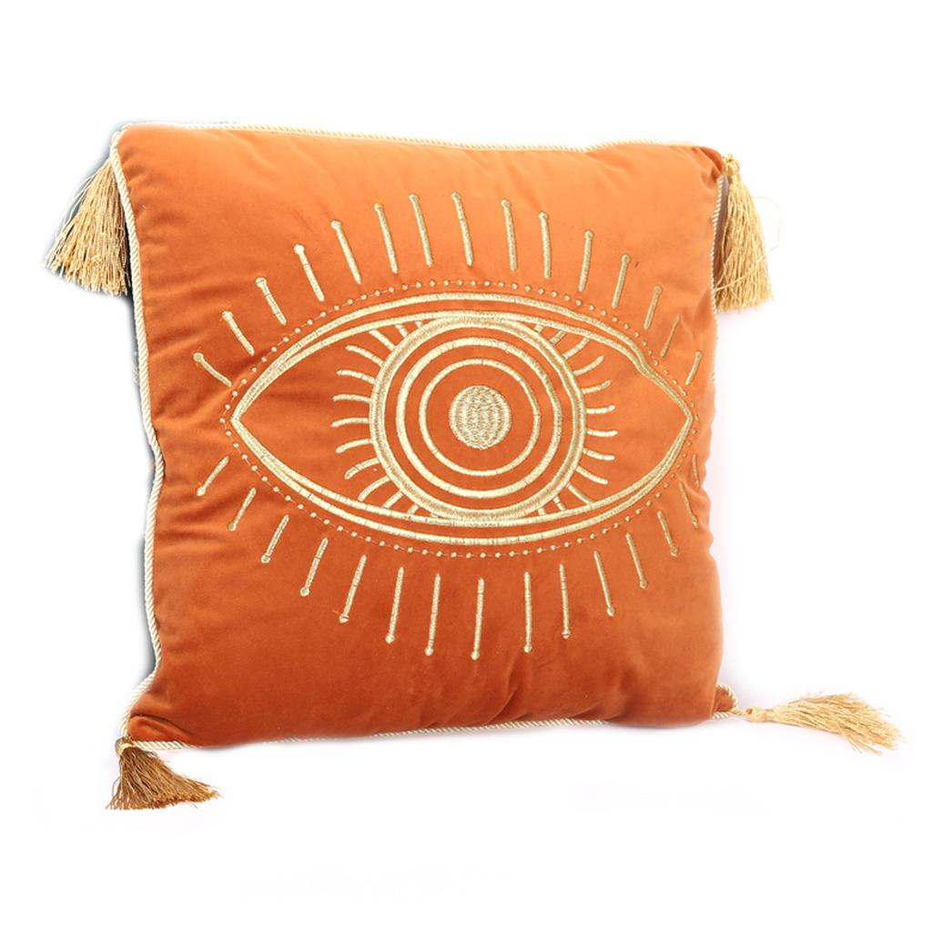 Les Trésors De Lily [A1426] - Orange 'Eye' Velvet Cushion - 40x40 Cm